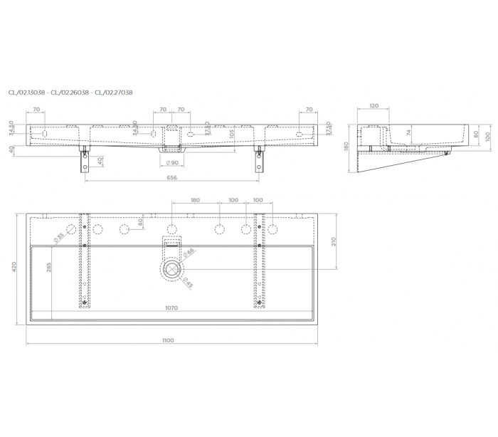 WASH ME Håndvask til montering enten på væg eller bord. Håndvasken er udført i et design af mat hvid aluite. Håndvasken måler 8 cm i højden og 110 x 42 cm i bredde og dybde. Der er i denne håndvask ikke et forboret hul til armatur. Monteringssæt medfølger.