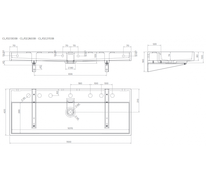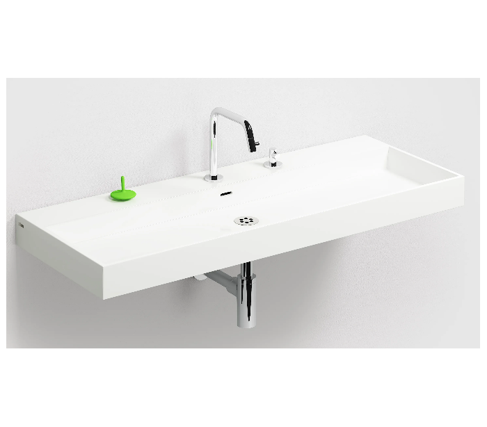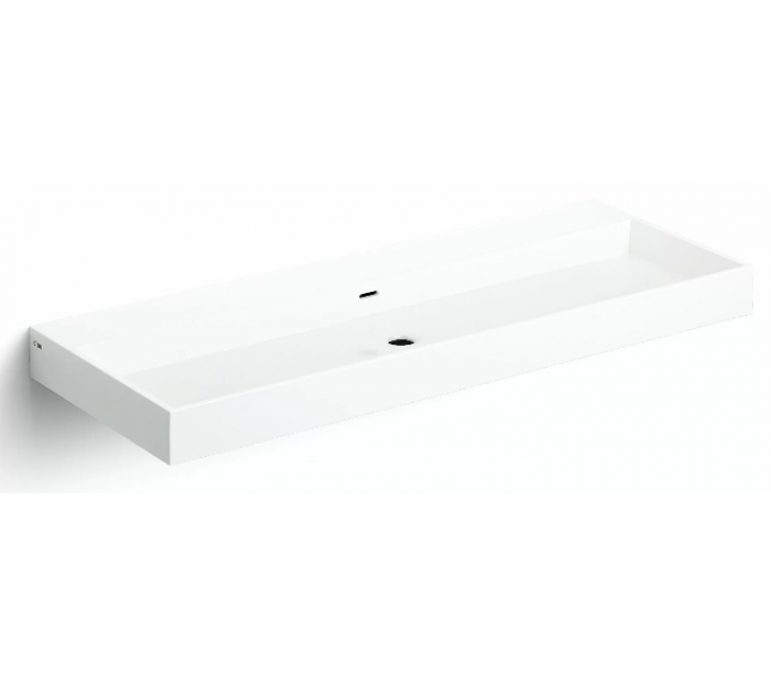 WASH ME Håndvask til montering enten på væg eller bord. Håndvasken er udført i et design af hvid højglans mineralkomposit. Håndvasken måler 8 cm i højden og 110 x 42 cm i bredde og dybde. Der er i denne håndvask ikke et forboret hul til armatur. Monteringssæt medfølger.