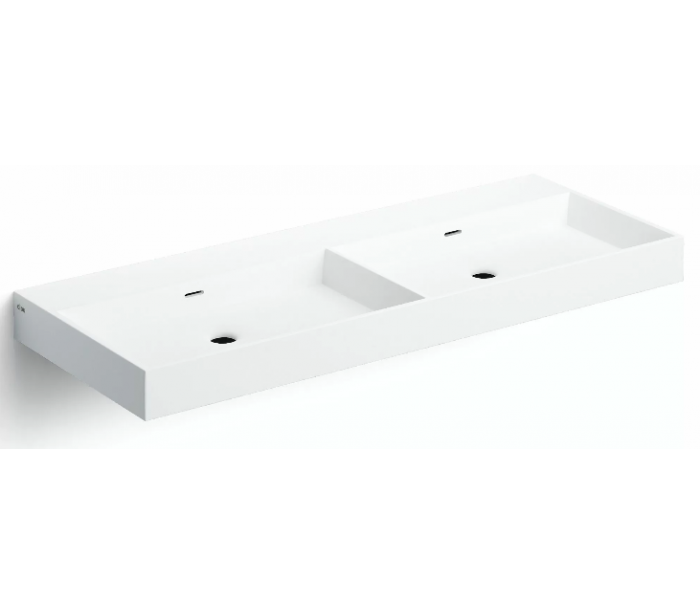 WASH ME Dobbelt håndvask til montering enten på væg eller bord. Håndvasken er udført i et design af mat hvid aluite. Håndvasken måler 8 cm i højden og 110 x 42 cm i bredde og dybde. Der er i denne håndvask ikke et forboret hul til armatur. Monteringssæt medfølger.