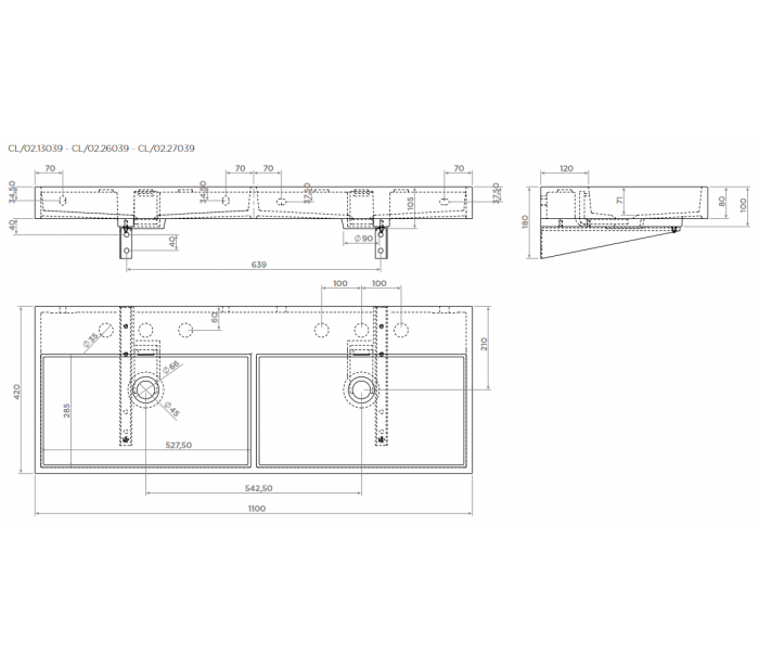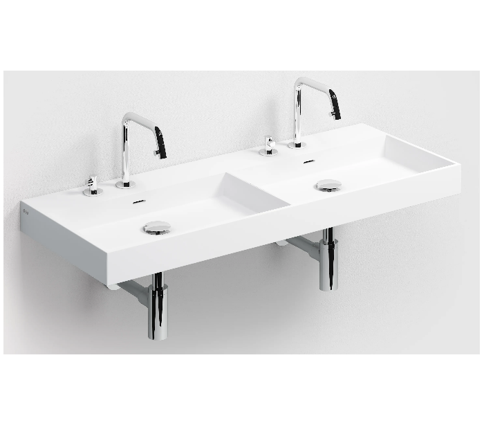 WASH ME Dobbelt håndvask 110 x 42 cm Aluite - Mat hvid