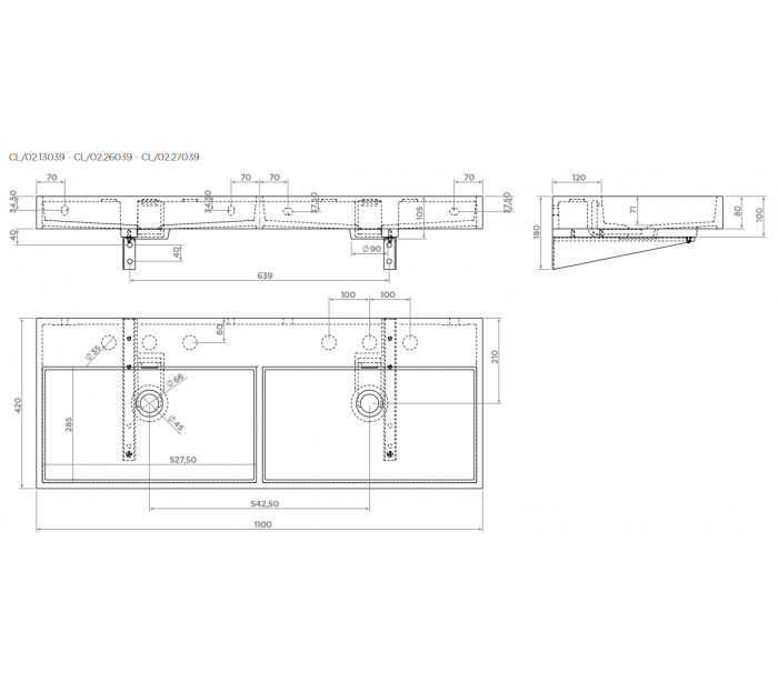 WASH ME Dobbelt håndvask 110 x 42 cm Mineral - Hvid højglans