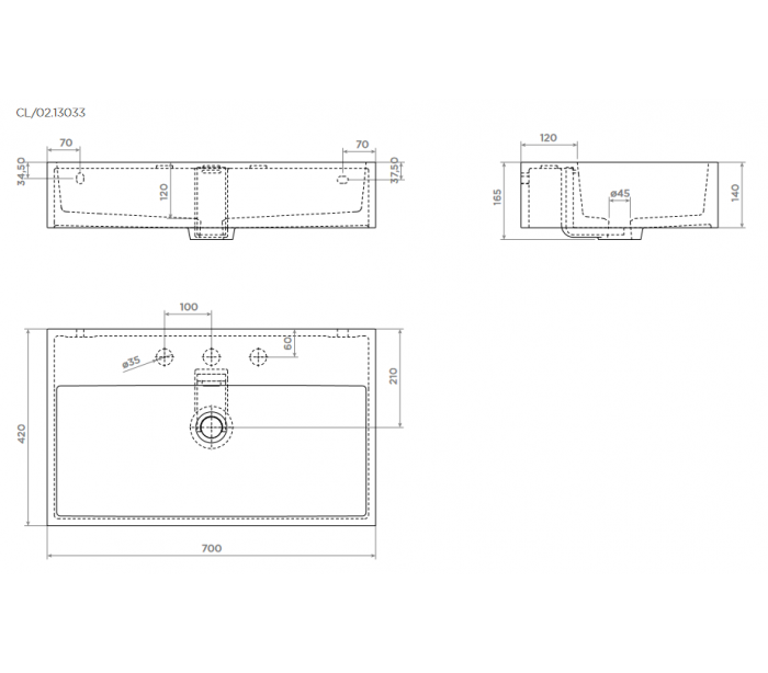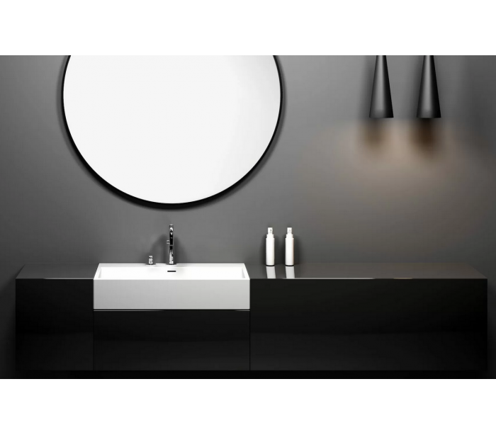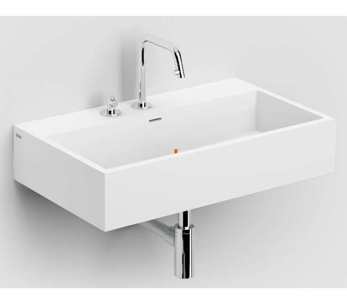 WASH ME Håndvask til montering enten på væg eller bord. Håndvasken er udført i et design af mat hvid aluite. Håndvasken måler 14 cm i højden og 70 x 42 cm i bredde og dybde. Der er i denne håndvask ikke et forboret hul til armatur. Monteringssæt medfølger.