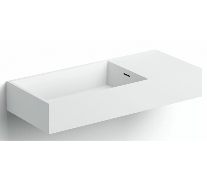WASH ME Håndvask til montering enten på væg eller bord. Håndvasken er udført i et design af mat hvid aluite. Håndvasken måler 12 cm i højden og 75 x 32 cm i bredde og dybde. Der er i denne håndvask ikke et forboret hul til armatur. Monteringssæt medfølger.