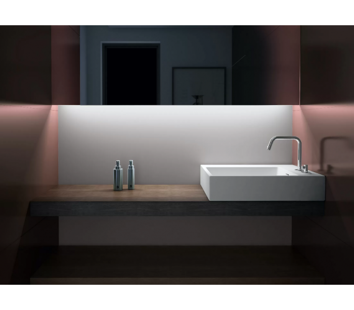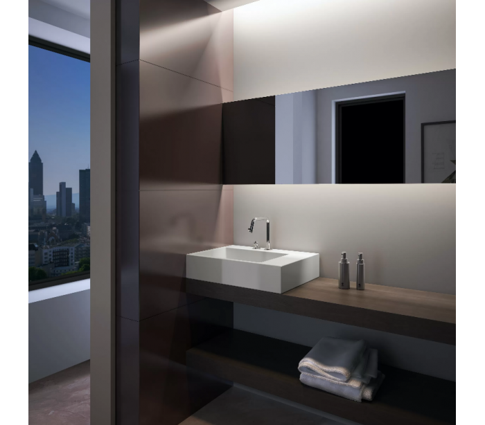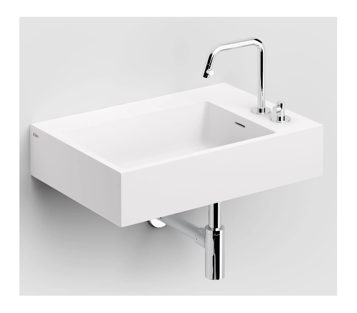 FLUSH Håndvask til montering enten på væg eller bord. Håndvasken er udført i et design af mat hvid aluite. Håndvasken måler 13 cm i højden og 60 x 42 cm i bredde og dybde. Der er i denne håndvask ikke et forboret hul til armatur. Monteringssæt medfølger.