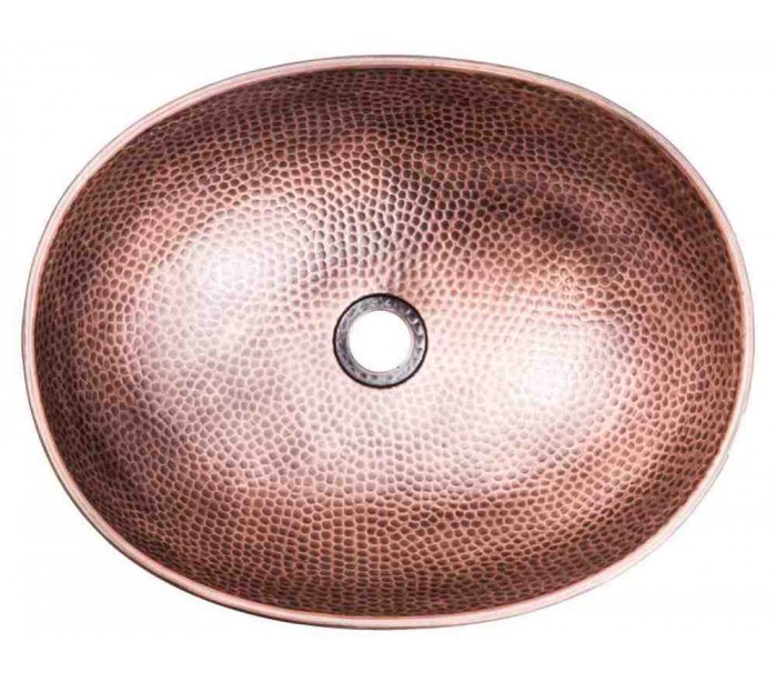 Oval håndvask udført i et design i antik kobber. Håndvasken måler 15 cm i højden og 44 x 36 cm i bredde og dybde. Håndvasken leveres uden bundventil (standard 1 1/4").