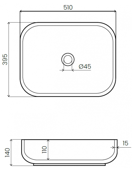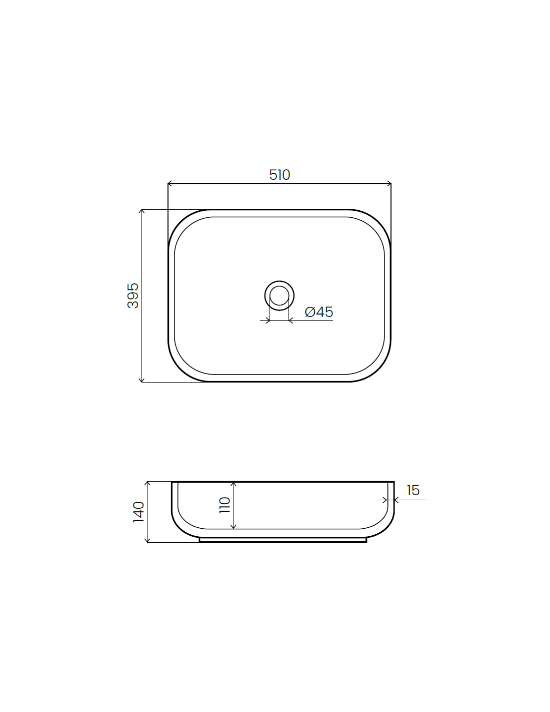 Håndvask udført i et design af grå marmor. Håndvasken måler 14 cm i højden og 51 x 41 cm i bredde og dybde. Håndvasken leveres uden bundventil (standard 1 1/4").