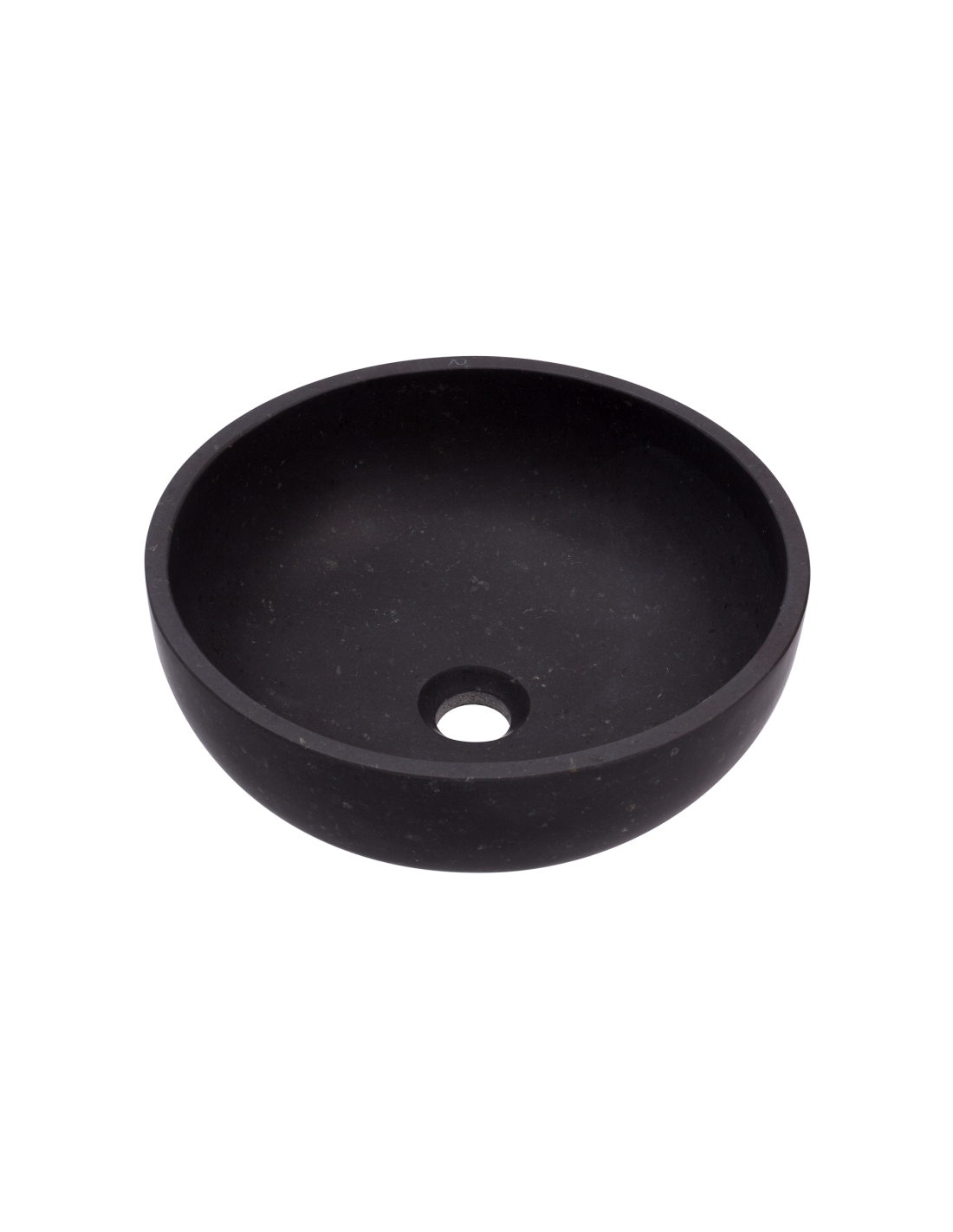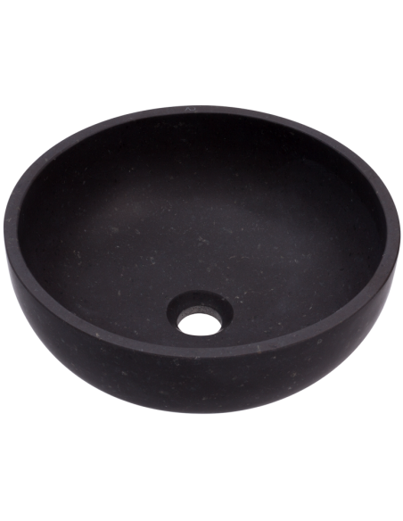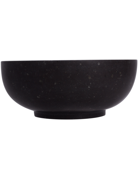 Håndvask udført i et design af sort granit. Håndvasken måler 15 cm i højden og 38 cm i diameter. Håndvasken leveres uden bundventil (standard 1 1/4").