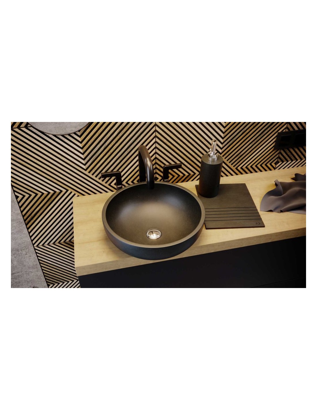 APO håndvask i granit Ø38 cm - Sort granit