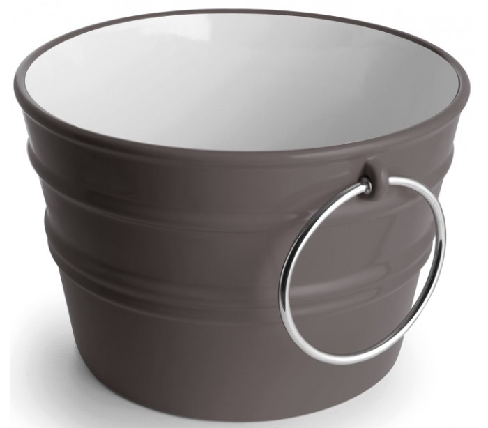 Håndvask i et moderne design, fremstillet med inderside i hvid keramik og med yderside og bundventil i mat basalt keramik. En smuk håndvask fra italienske Horganica, fremstillet i hånden og med bundventil i samme farve som vaskens yderside. Denne udgave er med håndklædering i kromlakeret messing.