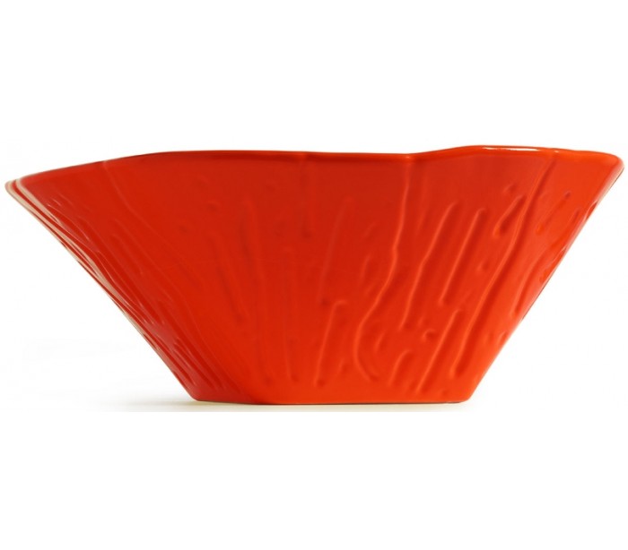 Håndvask i et moderne design, fremstillet med inderside i passionsrød keramik og med yderside og bundventil i passionsrød keramik. En smuk håndvask fra italienske Horganica, fremstillet i hånden og med bundventil i samme farve som vaskens yderside.