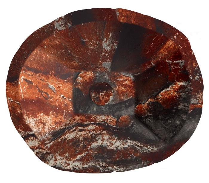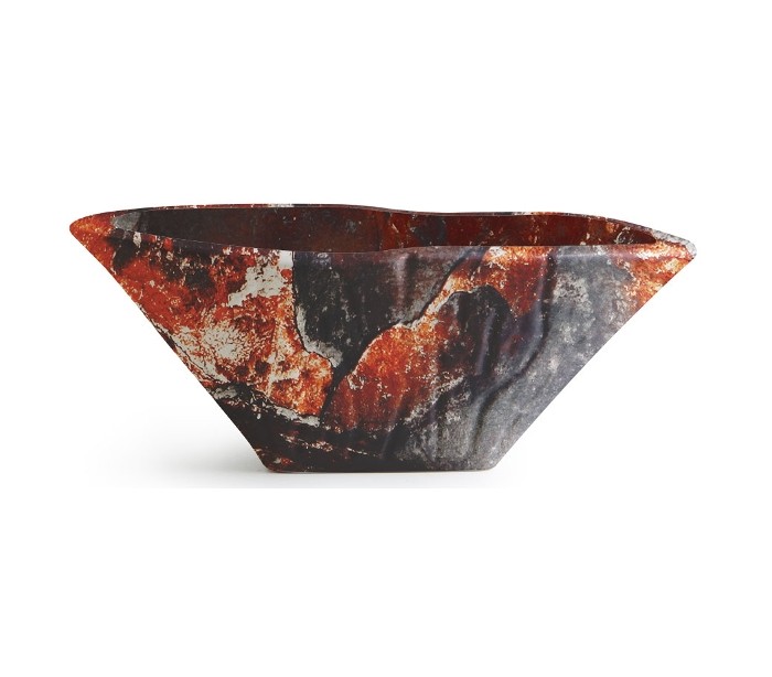 Håndvask i et moderne design, fremstillet i keramik med indersideeffekt af lavalignende marmor og med yderside og bundventil i lavalignende marmor effekt keramik. En smuk håndvask fra italienske Horganica, fremstillet i hånden og med bundventil i samme farve som vaskens yderside.