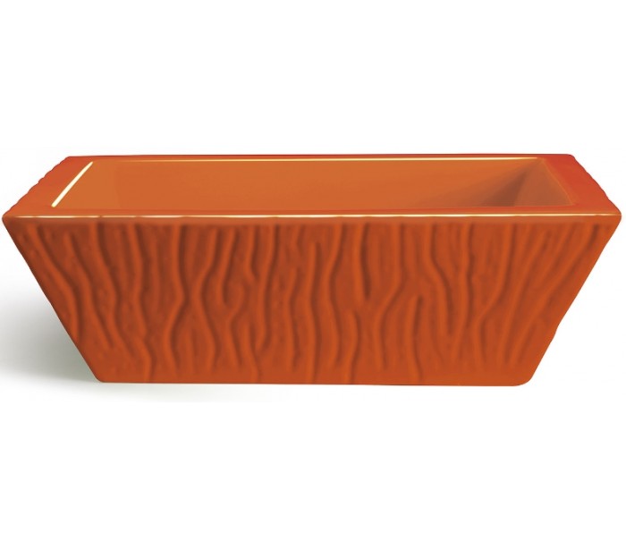 Håndvask i et moderne design, fremstillet med inderside i orange keramik og med yderside og bundventil i orange keramik. En smuk håndvask fra italienske Horganica, fremstillet i hånden og med bundventil i samme farve som vaskens yderside.