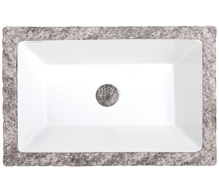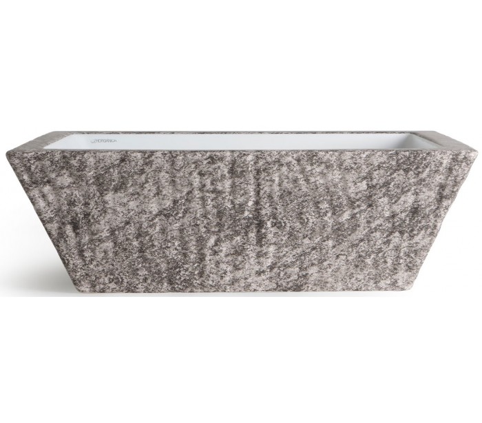 Håndvask i et moderne design, fremstillet med inderside i hvid keramik og med yderside og bundventil i gråbrun marmor keramik. En smuk håndvask fra italienske Horganica, fremstillet i hånden og med bundventil i samme farve som vaskens yderside.