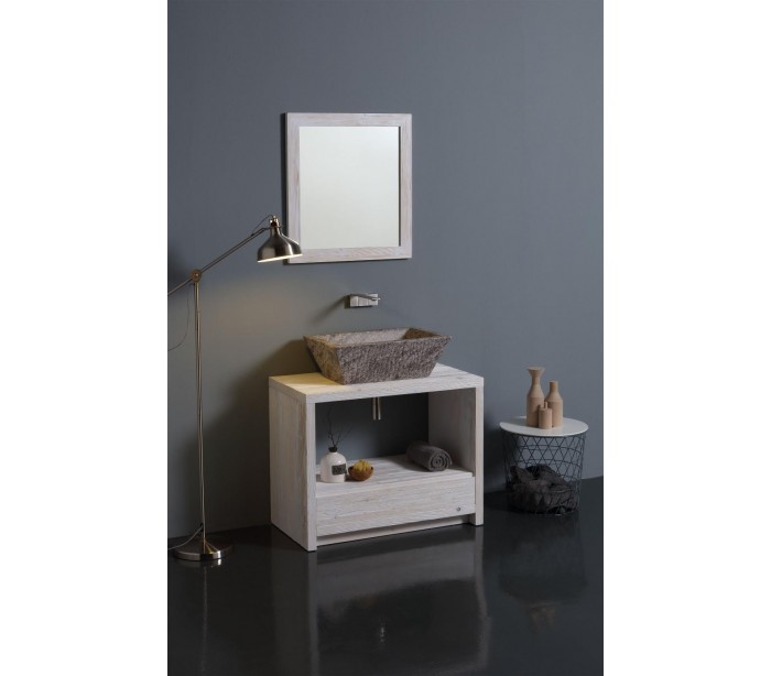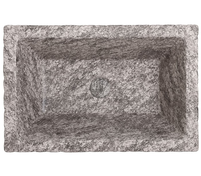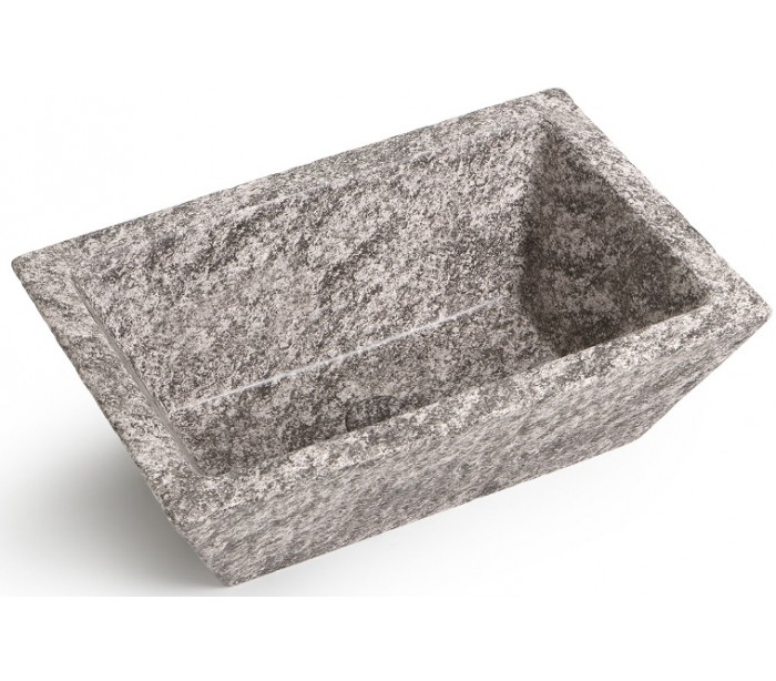 Håndvask i et moderne design, fremstillet med inderside i gråbrun marmor keramik og med yderside og bundventil i gråbrun marmor keramik. En smuk håndvask fra italienske Horganica, fremstillet i hånden og med bundventil i samme farve som vaskens yderside.