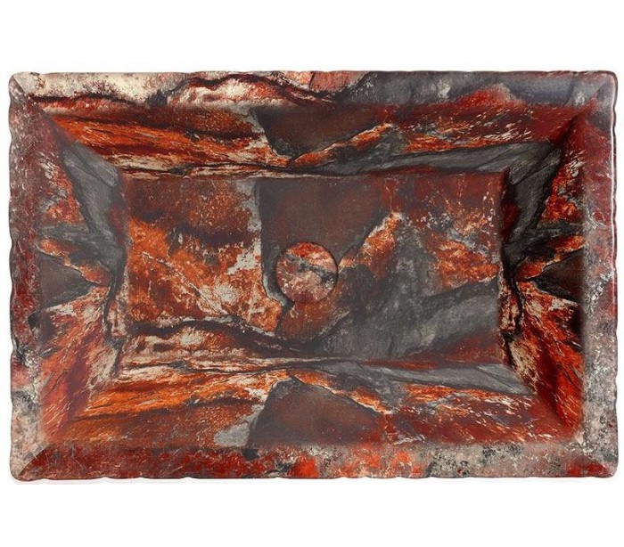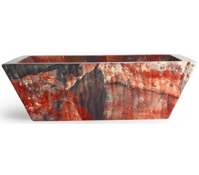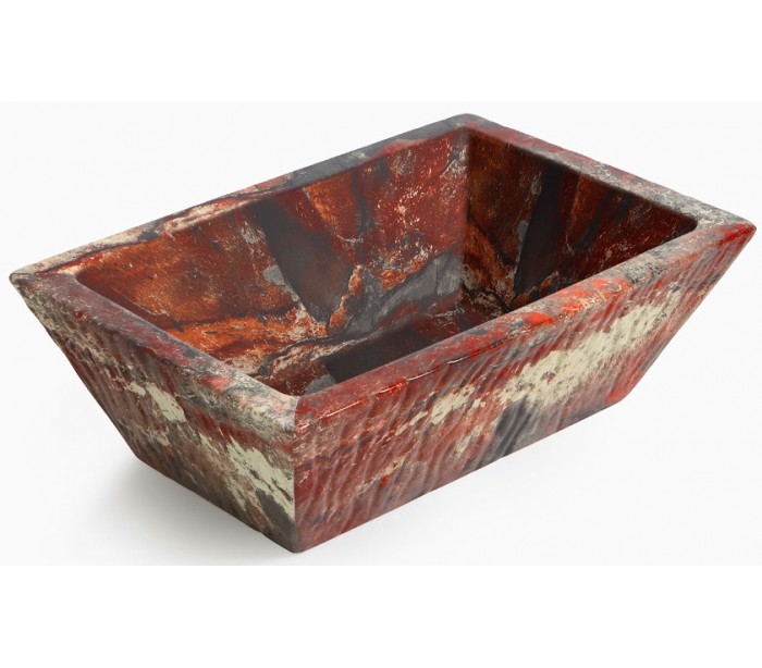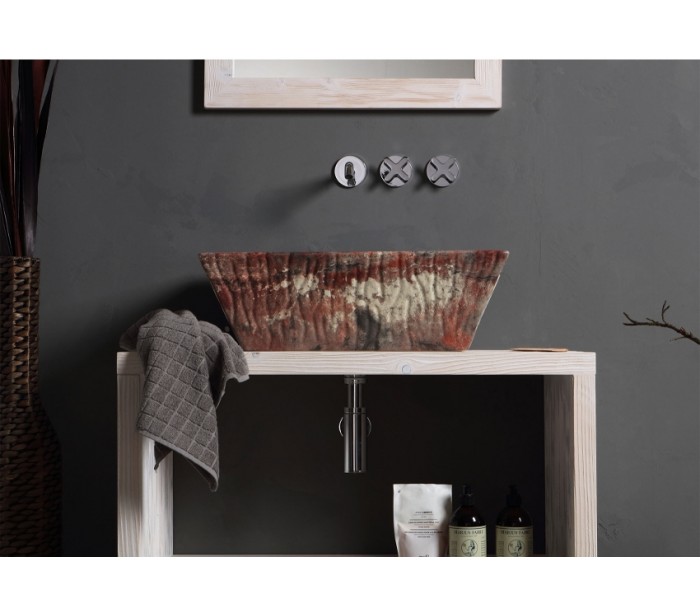 Håndvask i et moderne design, fremstillet med inderside i lavalignende marmor keramik og med yderside og bundventil i keramik med en lavalignende marmor effekt. En smuk håndvask fra italienske Horganica, fremstillet i hånden og med bundventil i samme farve som vaskens yderside.