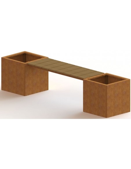 Bænkens plantekasser er lavet af Corten-A stålplade af høj kvalitet, der har den unikke egenskab, at den danner et meget tæt oxidlag (rustlag), som er umuligt at ruste igennem. På grund af det tætte oxidlag er det dybere materiale afskærmet for ilt, så oxidationen bremses betydeligt, mens korrosionen fortsætter. Bænken i cortenstål leveres urustet, i den grå metalfarve. Det brune/orange rustlag dannes inden for få uger til et par måneder og ingen behandling er påkrævet.