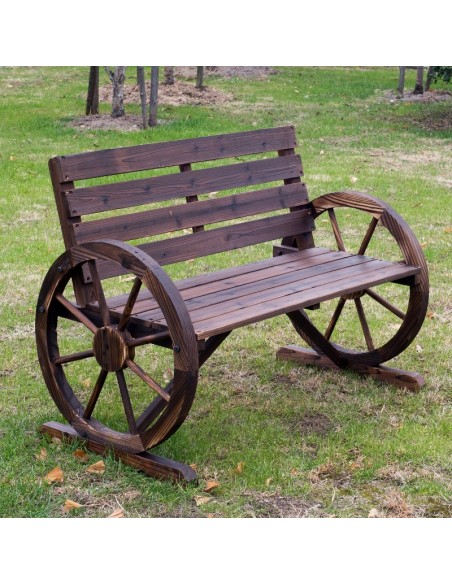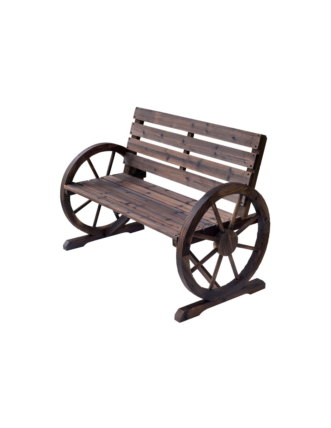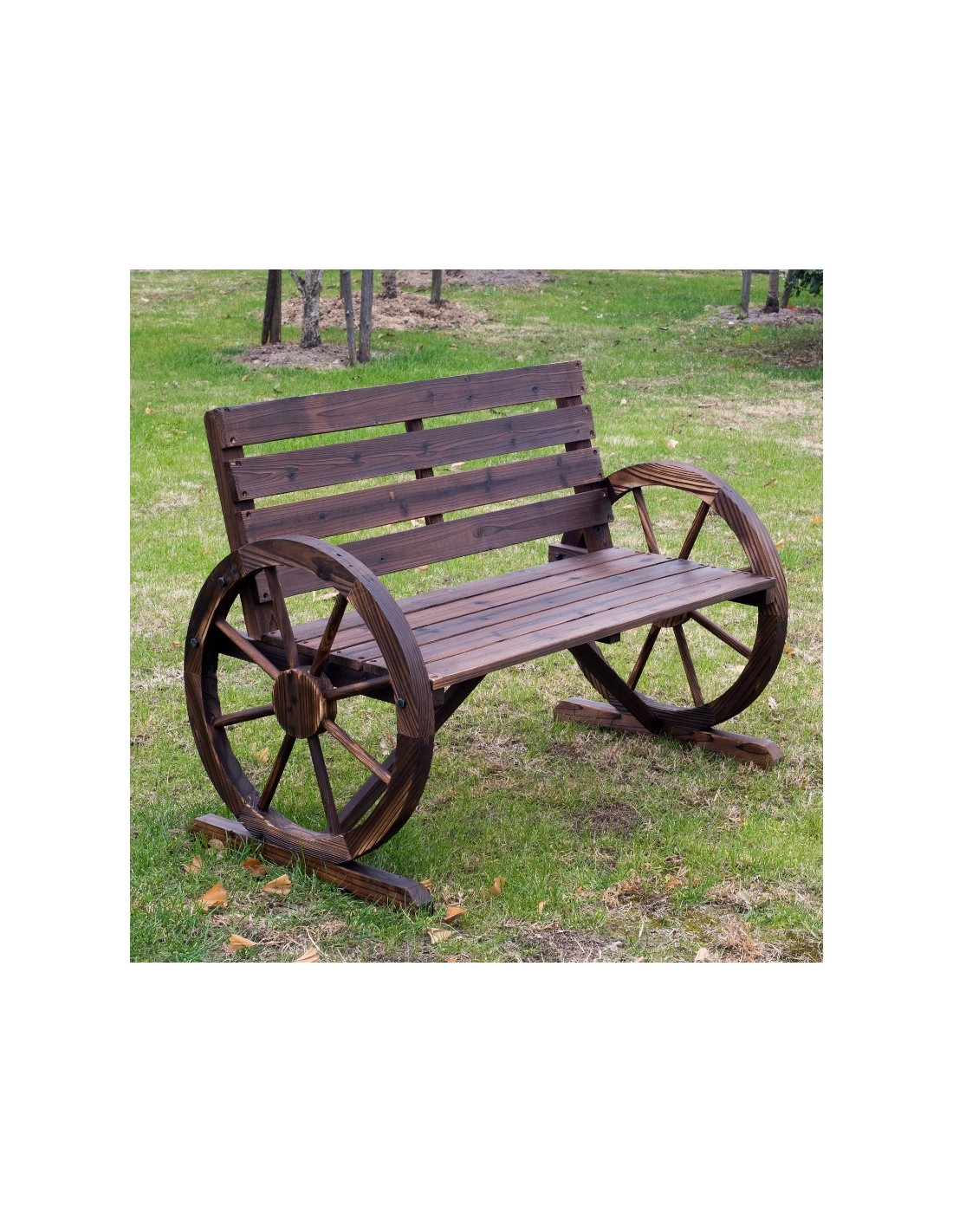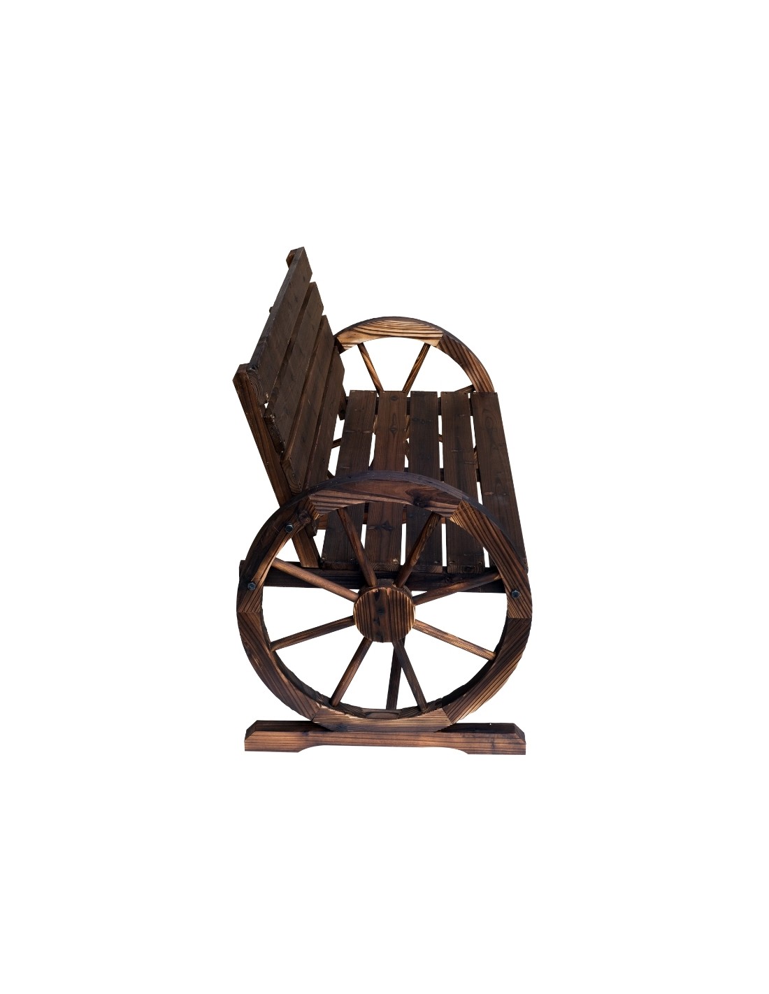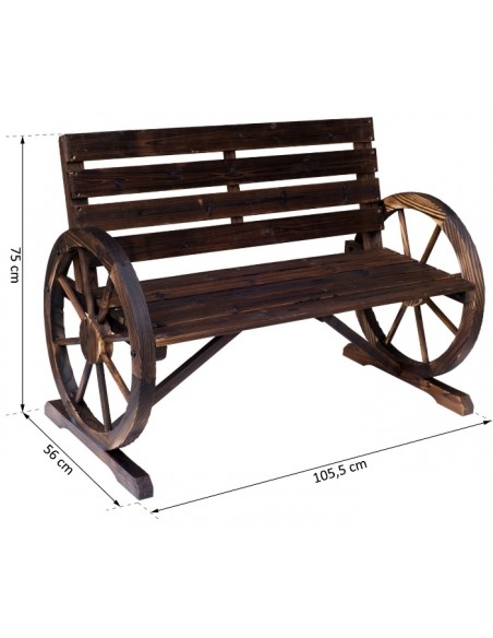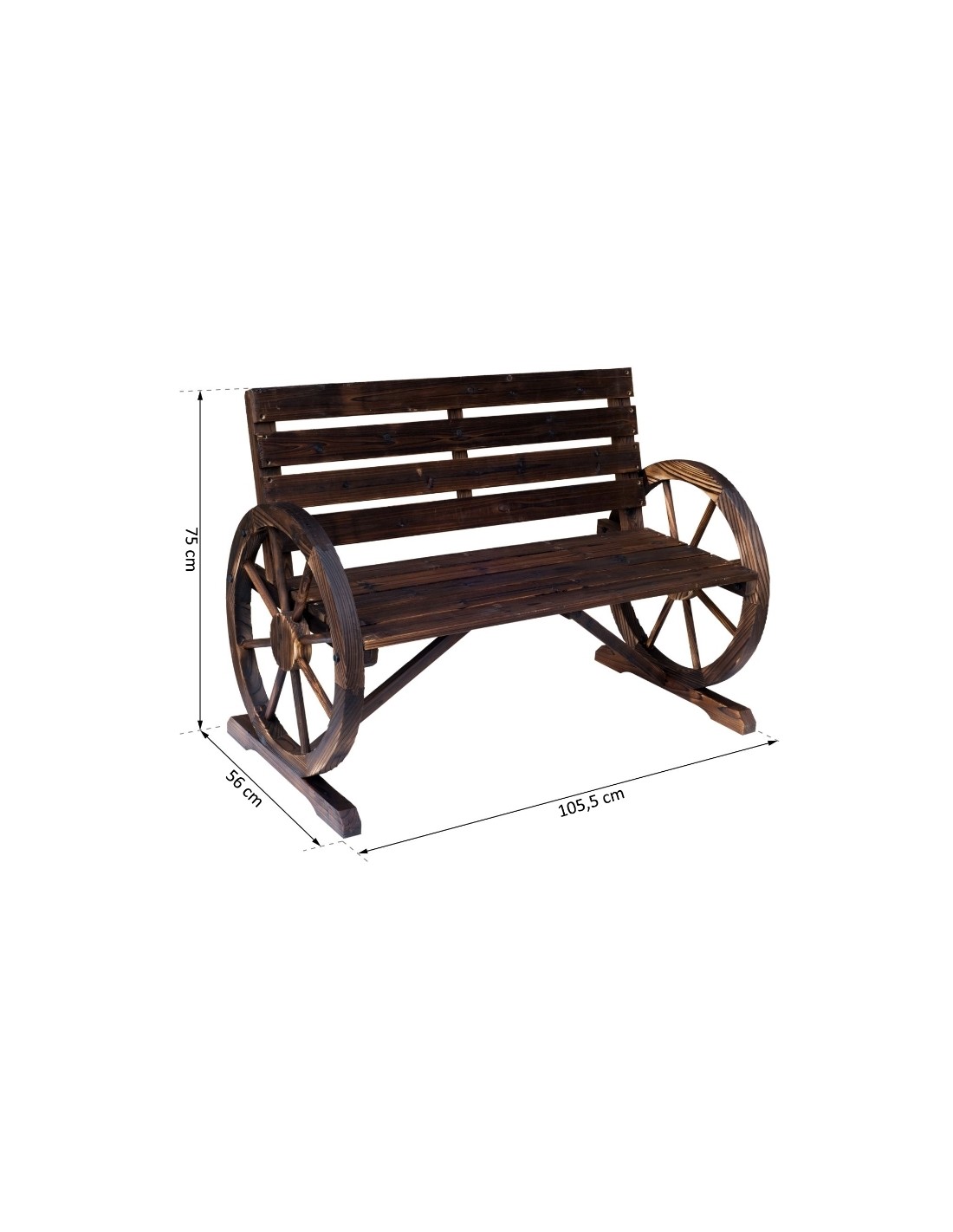 Havebænk udført i et design af antik brunlakeret fyrretræ. Havebænken måler 75 cm i højden og 105,5 x 56 cm i bredde og dybde. Siddehøjden er 39 cm.