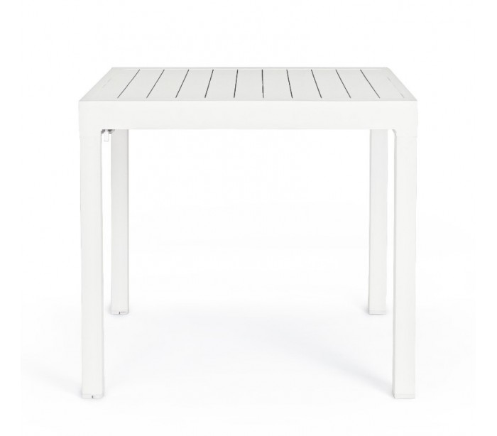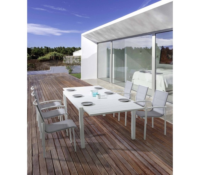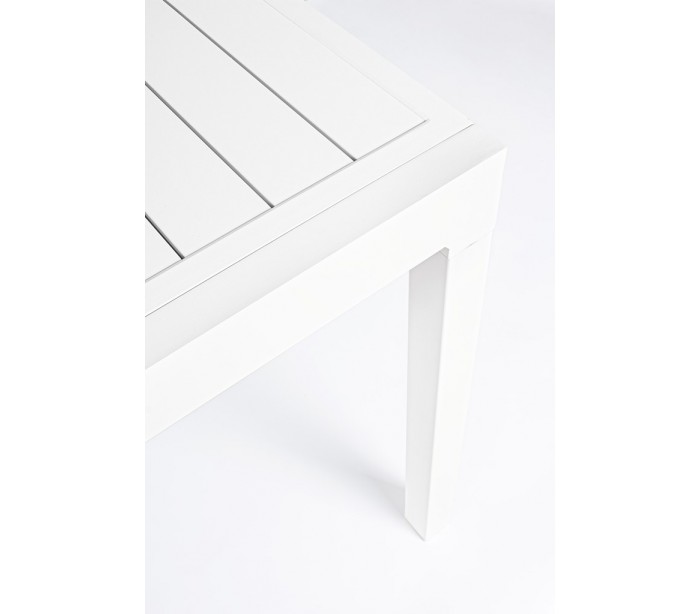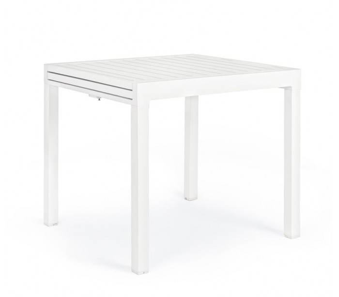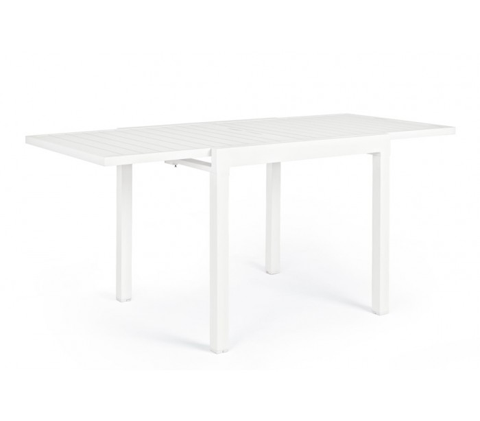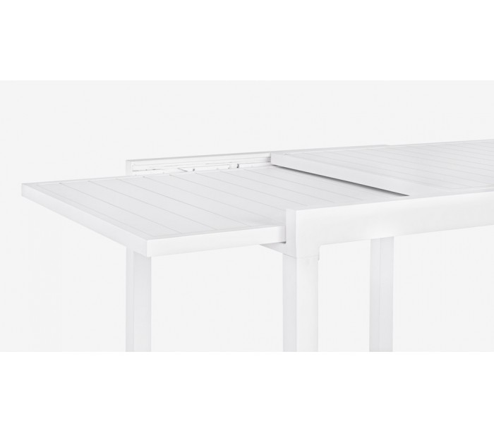 Havebord med udtræk i et moderne design af hvid pulverlakeret aluminium. Bordet måler 83 - 166 x 80 cm i bredde og dybde og 75 cm i højden.