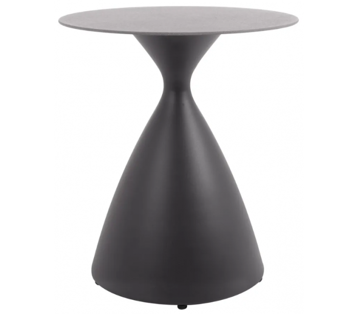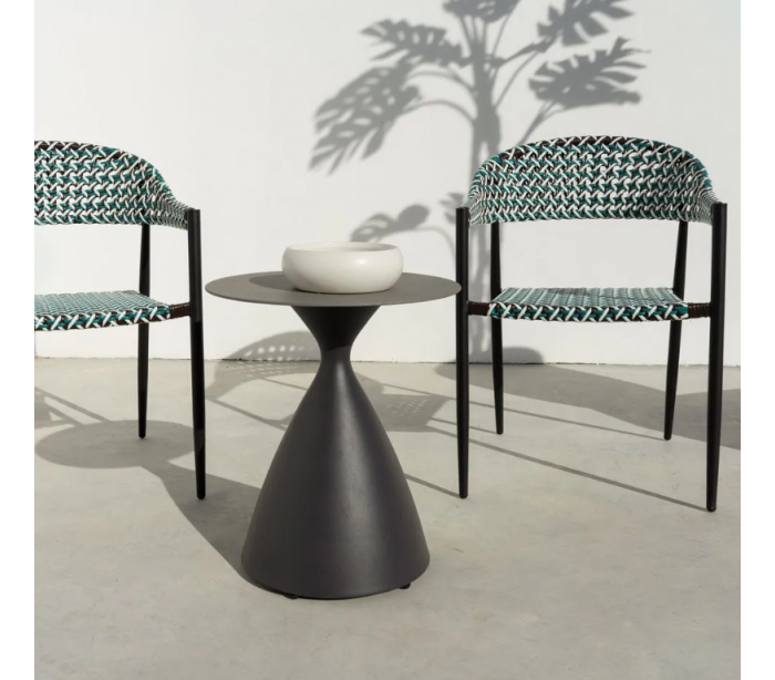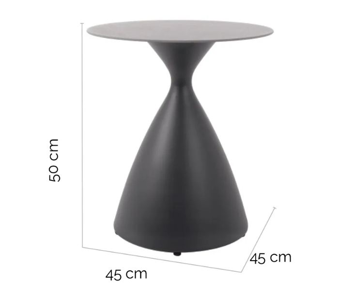 Nadia lounge havebord udført i et design af antracit lakeret aluminium og bordplade i hærdet glas med effekt af mørkegrå sten. Bordet måler 50 cm i højden og 45 cm i diameter.