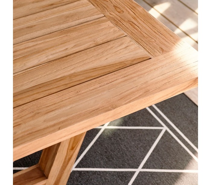 • Teaktræ er naturligt resistent overfor fugt, men vi anbefaler løbende efterbehandling og tildækning ved regnvejr
