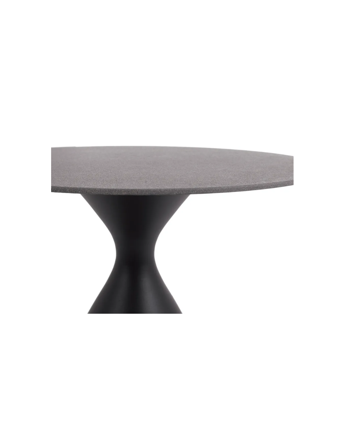 Have barbord udført i et design af antracit lakeret aluminium og glas med grå steneffekt. Bordet måler 110 cm i højden og 70 cm i diameter. Bordet tåler at stå ude hele sommeren og er resistent overfor regn og fugt.