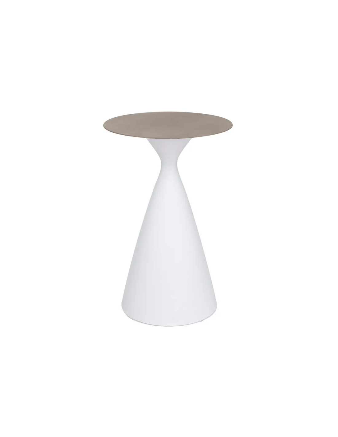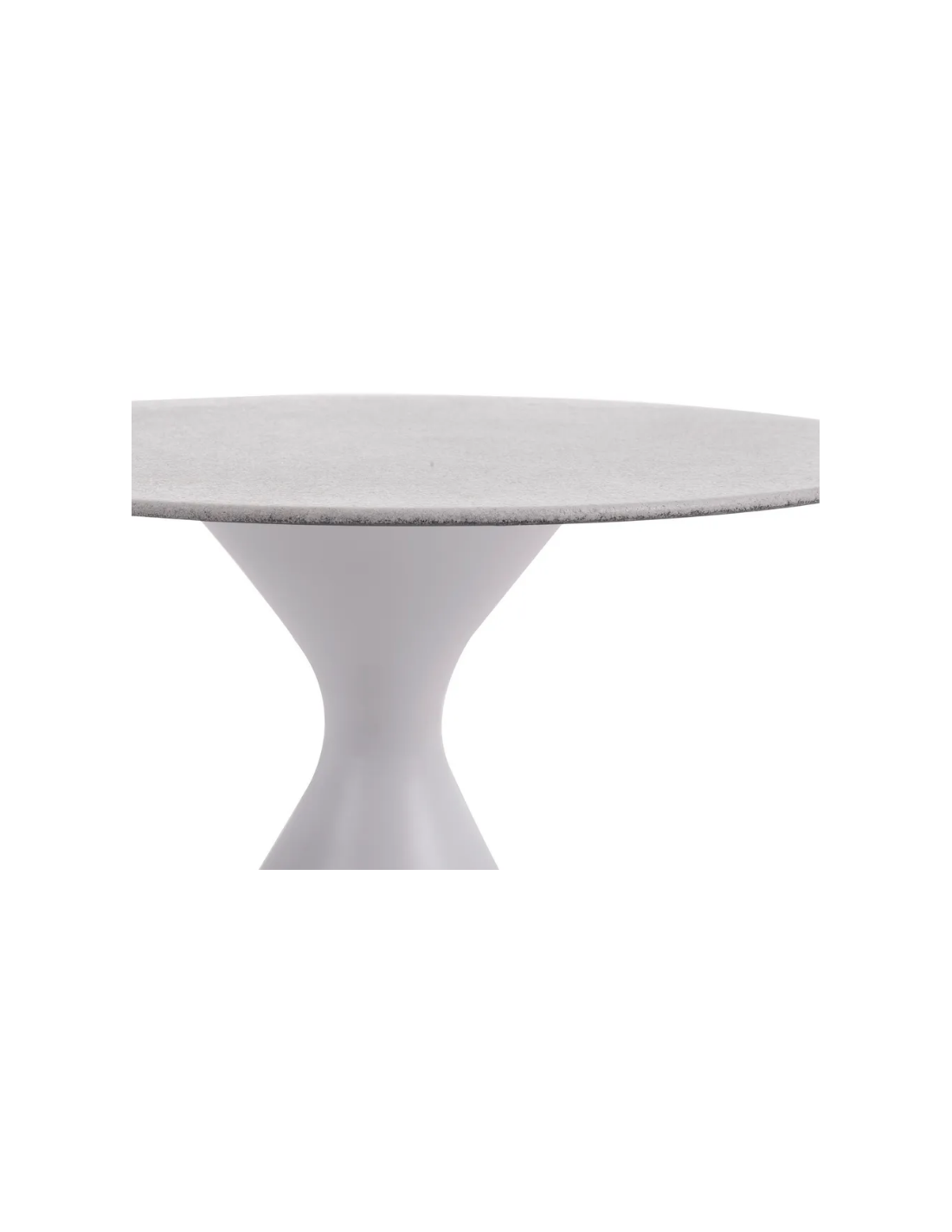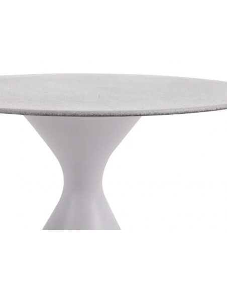 Have barbord udført i et design af hvidlakeret aluminium og glas med grå steneffekt. Bordet måler 110 cm i højden og 70 cm i diameter. Bordet tåler at stå ude hele sommeren og er resistent overfor regn og fugt.