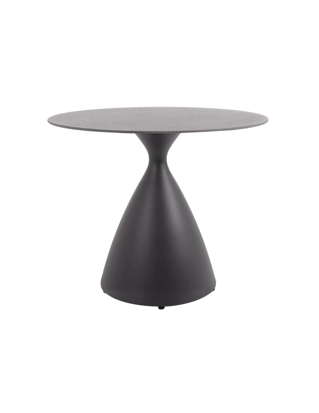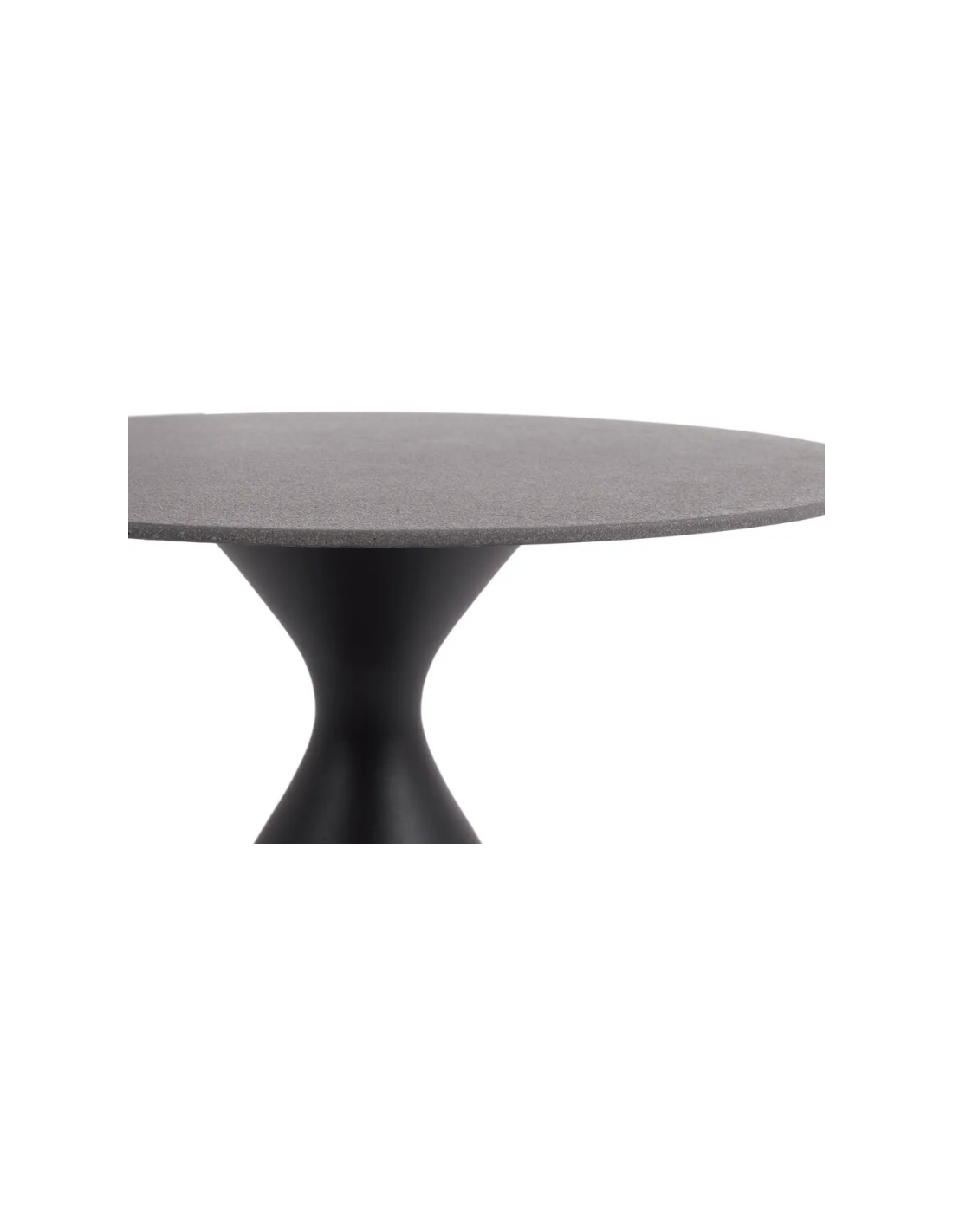 Havebord udført i et design af antracit lakeret aluminium og glas med grå steneffekt. Bordet måler 75 cm i højden og 80 cm i diameter. Bordet tåler at stå ude hele sommeren og er resistent overfor regn og fugt.