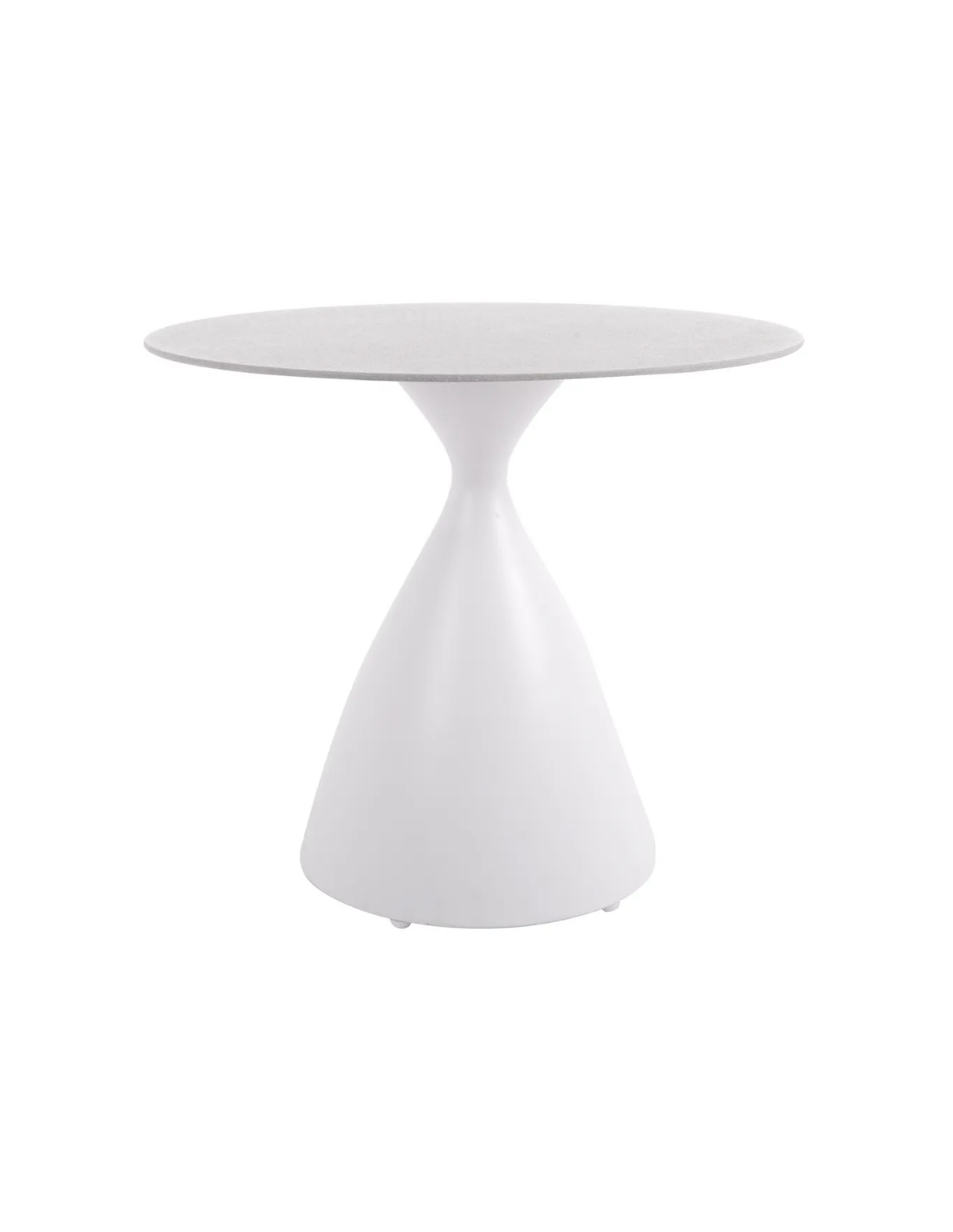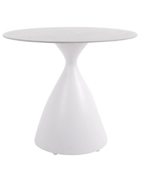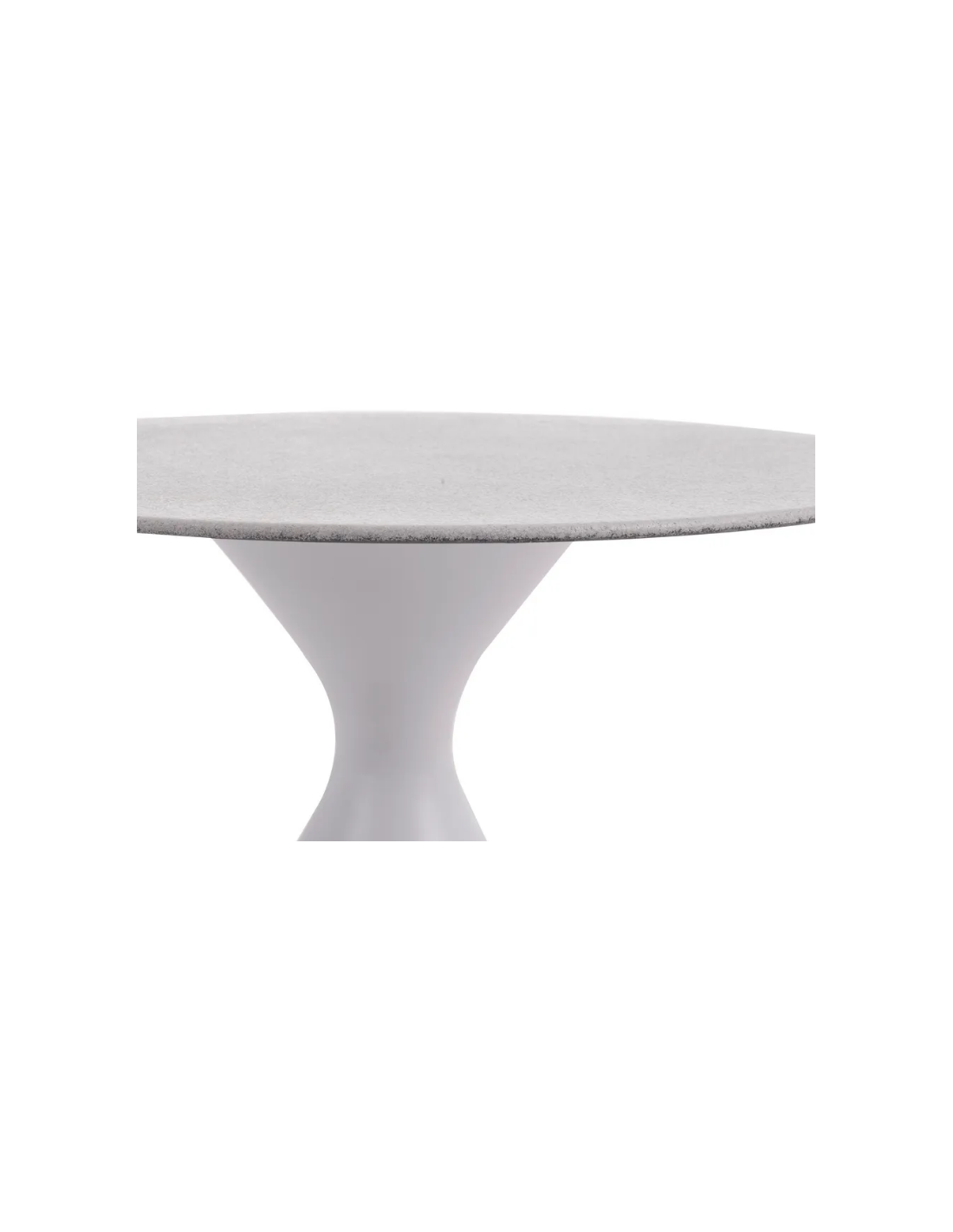 Havebord udført i et design af hvidlakeret aluminium og glas med grå steneffekt. Bordet måler 75 cm i højden og 80 cm i diameter. Bordet tåler at stå ude hele sommeren og er resistent overfor regn og fugt.