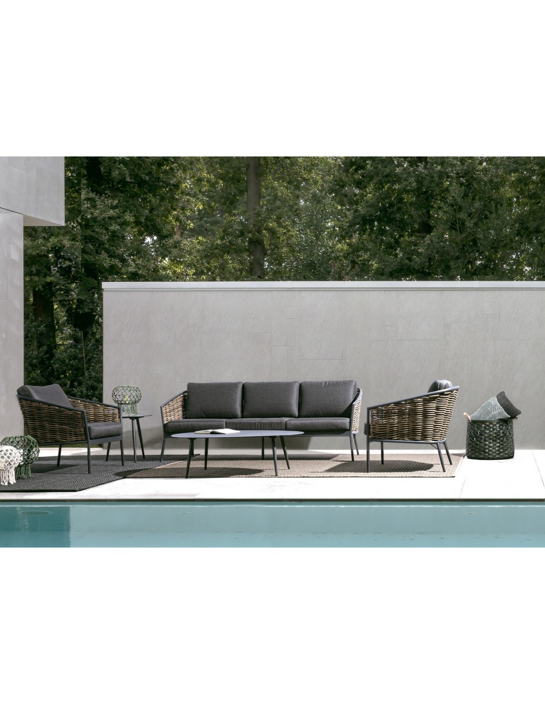 Loungebord i et design af charcoal pulverlakeret aluminium. Bordet måler 36 cm i højden og 120 x 75 cm i bredde og dybde.