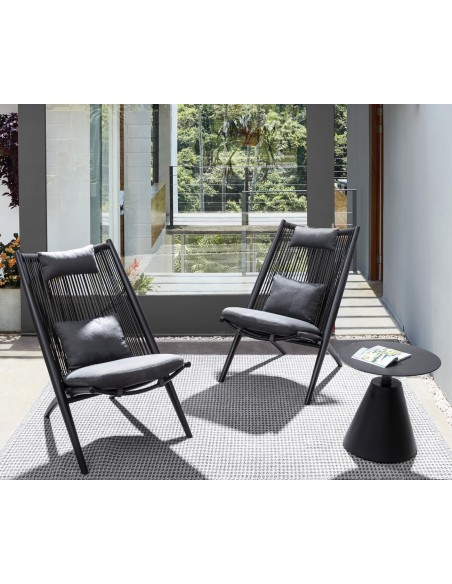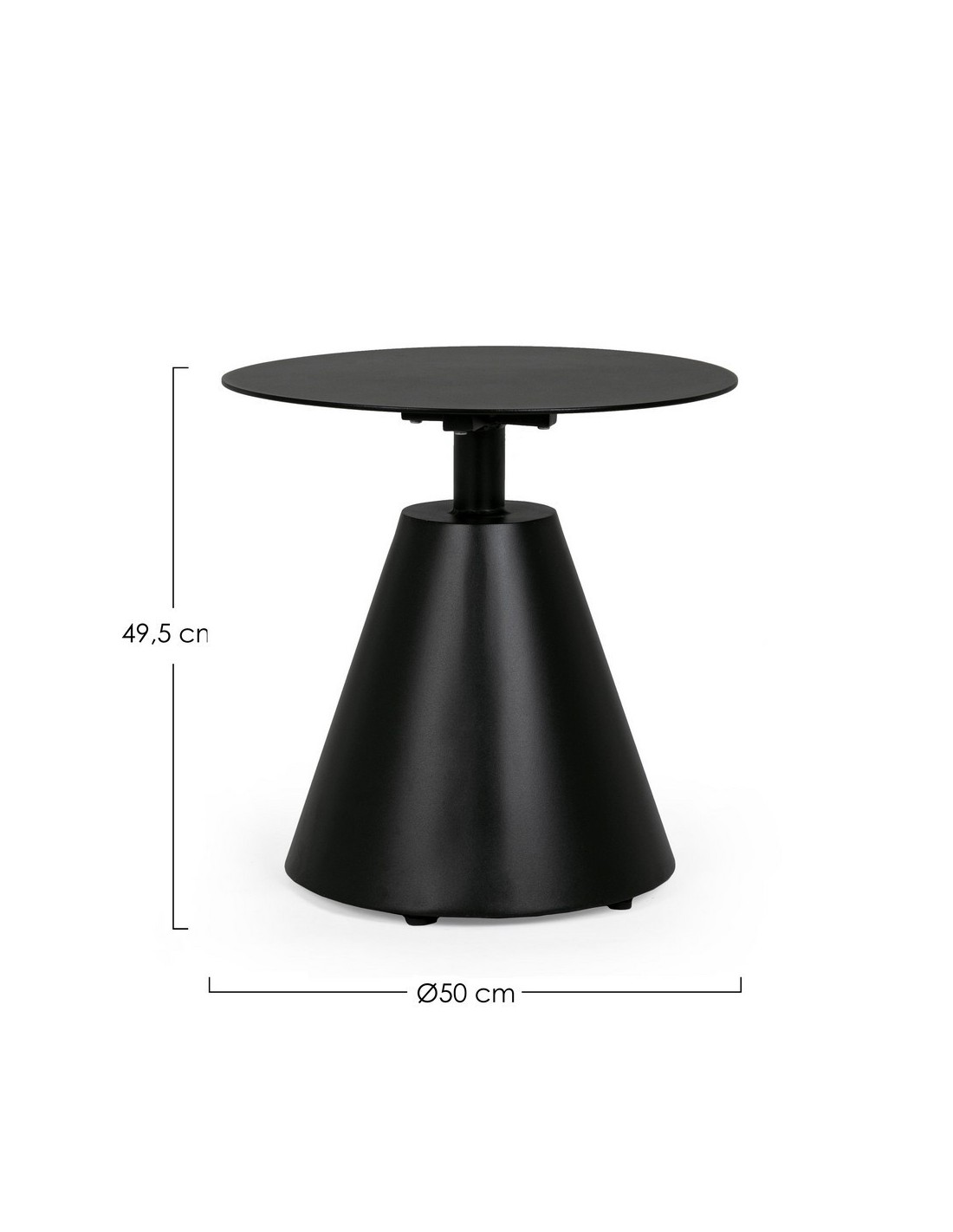 Loungebord i et design af sort pulverlakeret aluminium. Bordet måler 48,5 cm i højden og 50 cm i diameter.