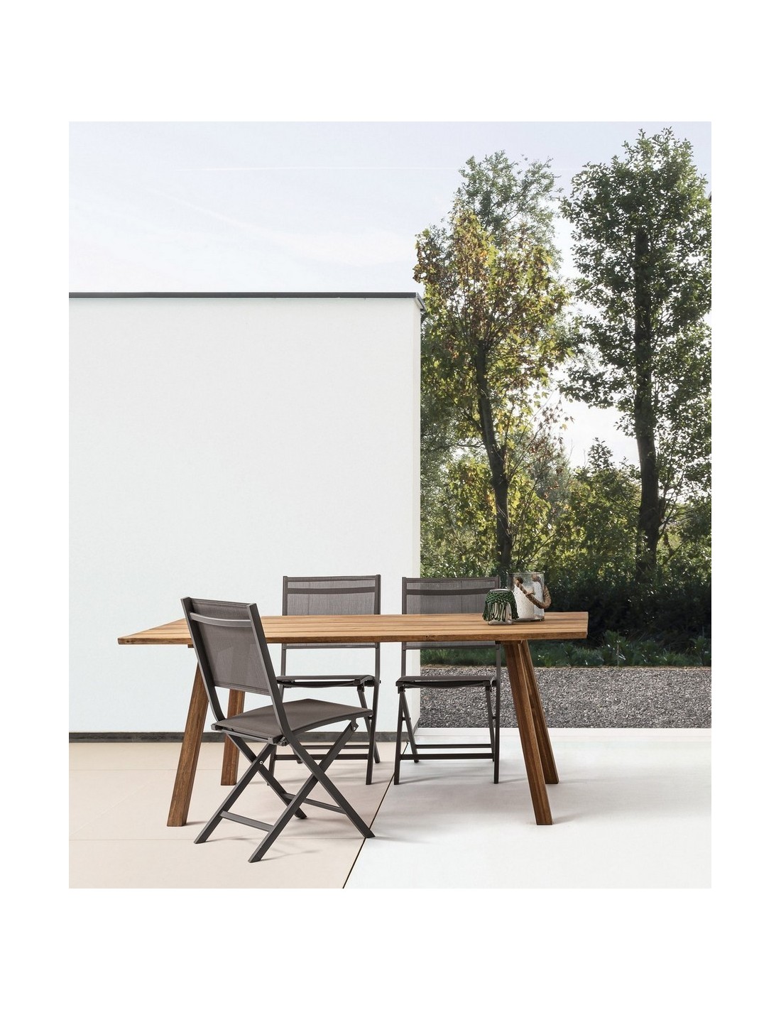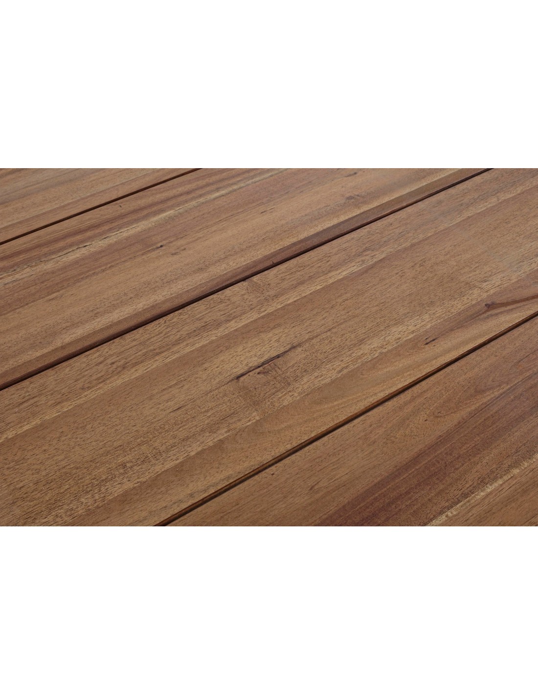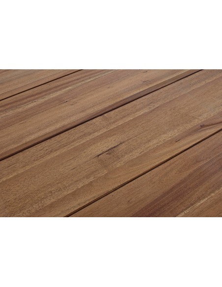 Akacietræ er naturligt resistent overfor fugt, og tåler at stå udendørs i regn, men vi anbefaler løbende at vedligeholde bordet med træolie.
