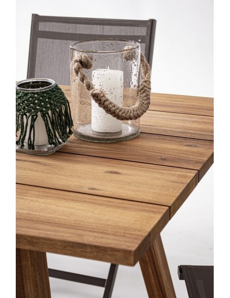 Havebord udført i et design af olieret akacietræ. Bordet måler 75 cm i højden og 180 x 90 cm i bredde og dybde.