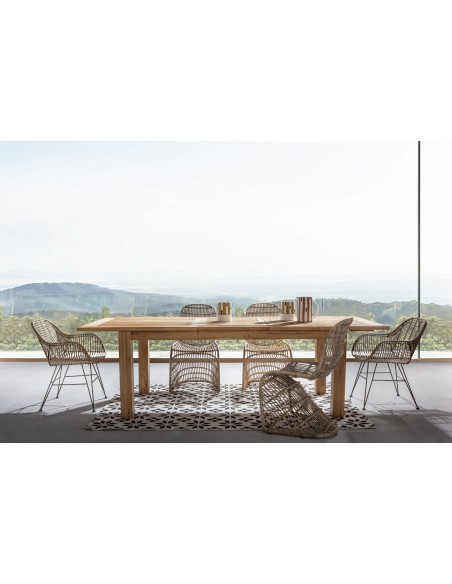 Teaktræ er naturligt resistent overfor fugt, og tåler at stå udendørs i regn, men vi anbefaler løbende at vedligeholde bordet med teaktræolie.