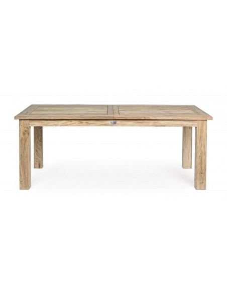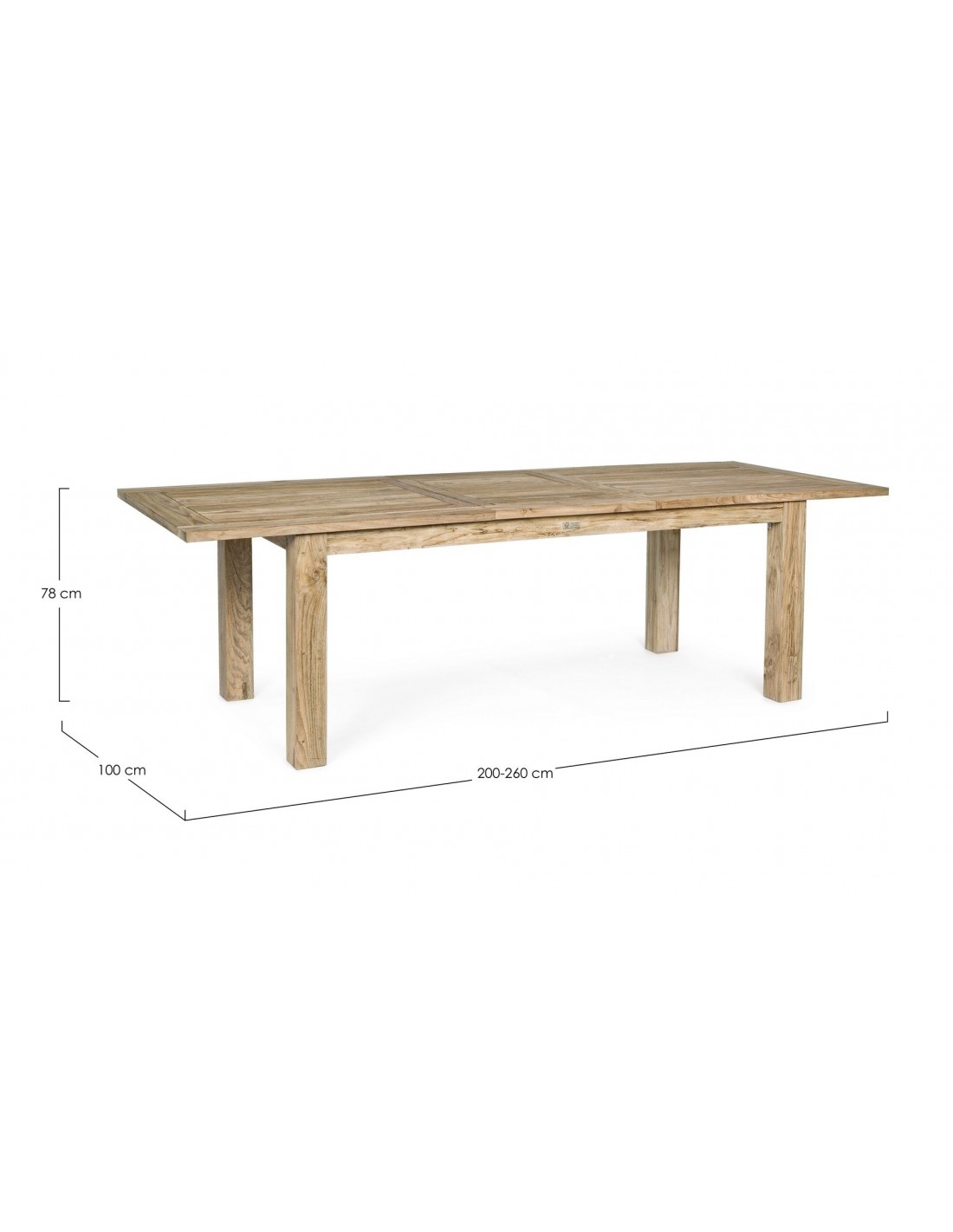 Havebord med udtræk, udført i et design af genanvendt teaktræ. Bordet måler 78 cm i højden og 200 - 260 x 100 cm i bredde og dybde.