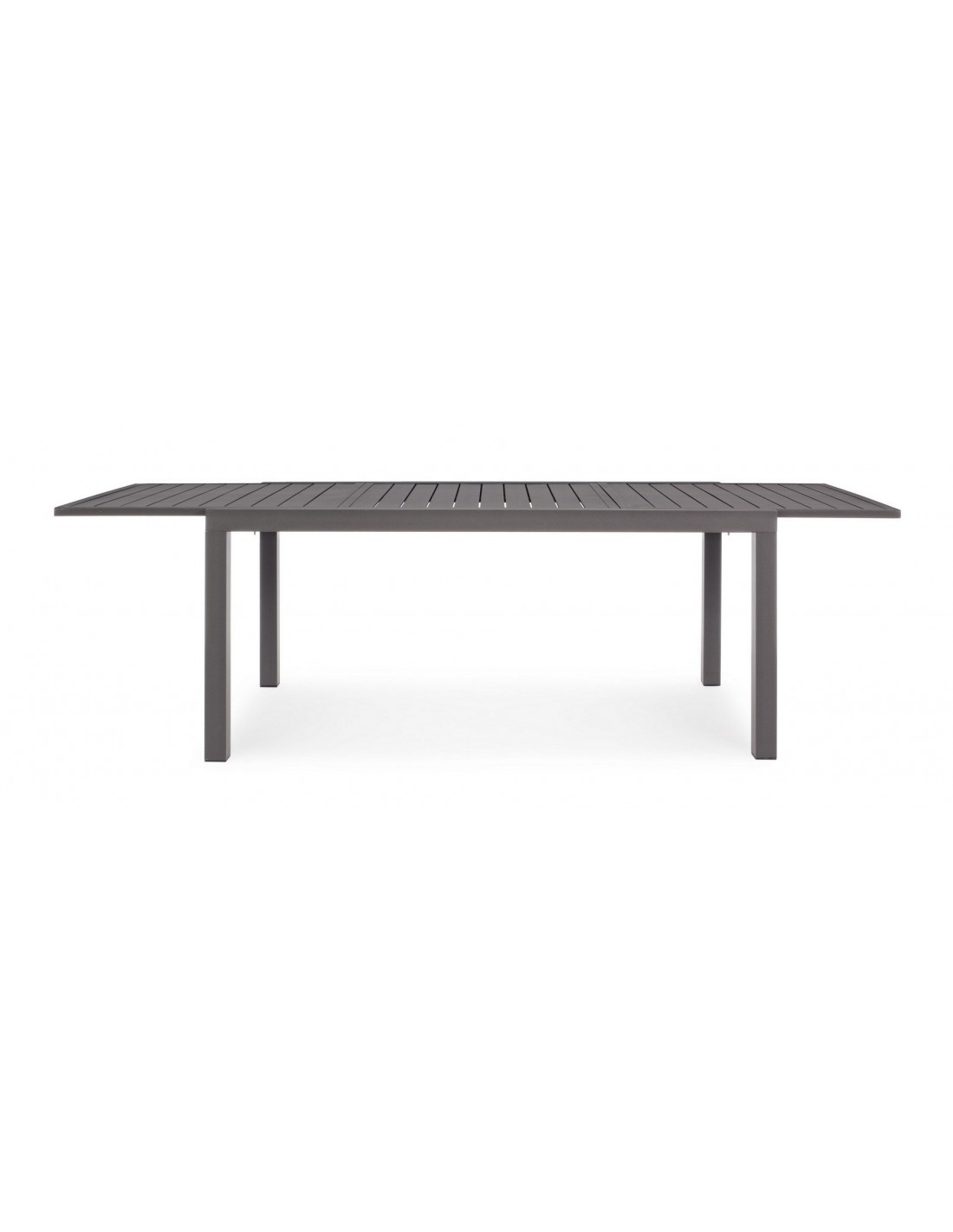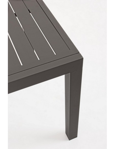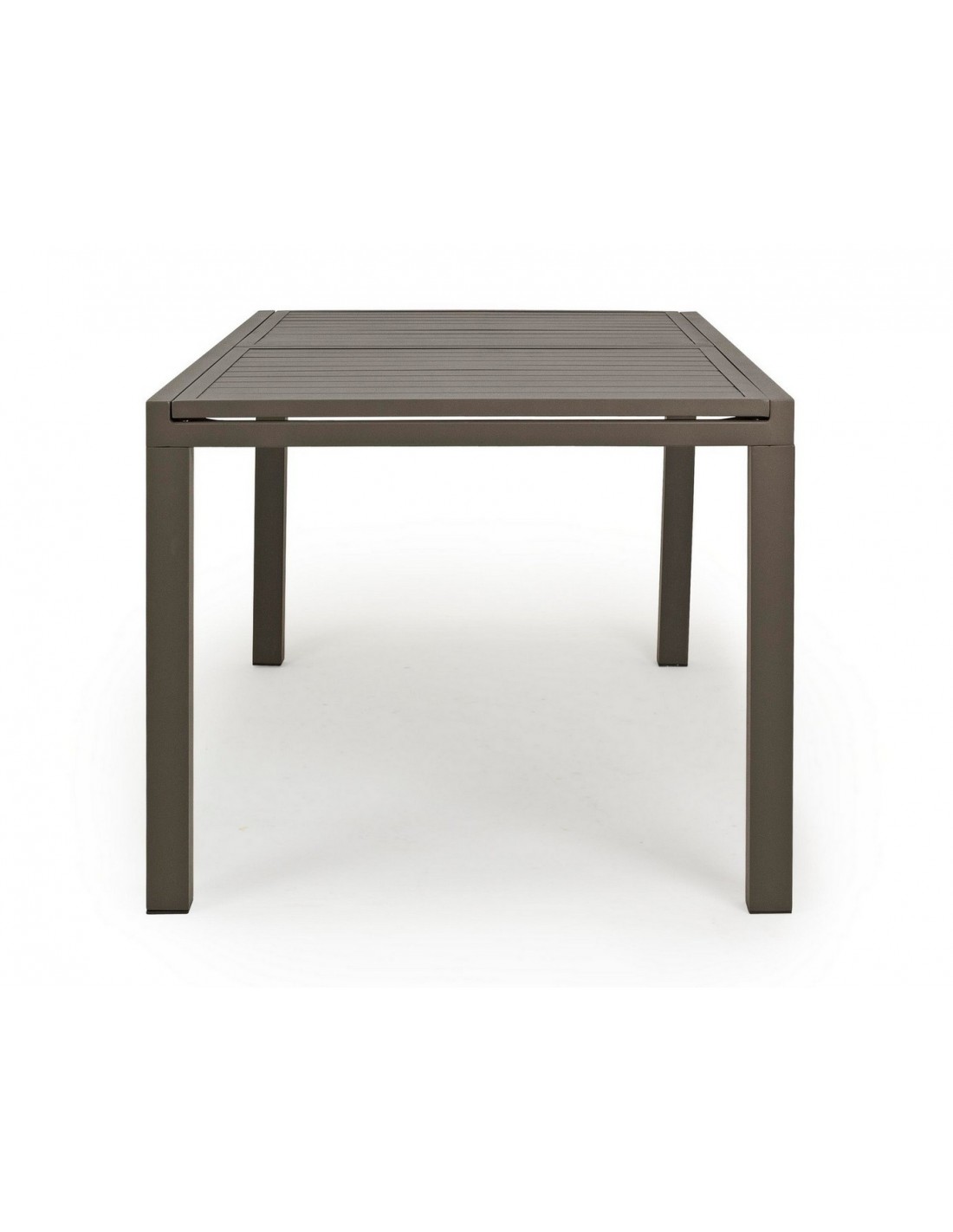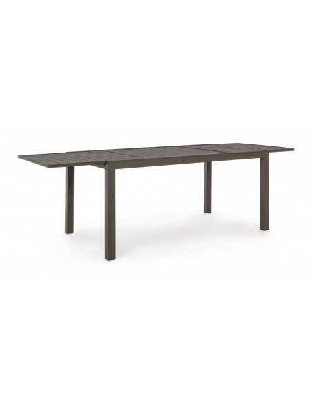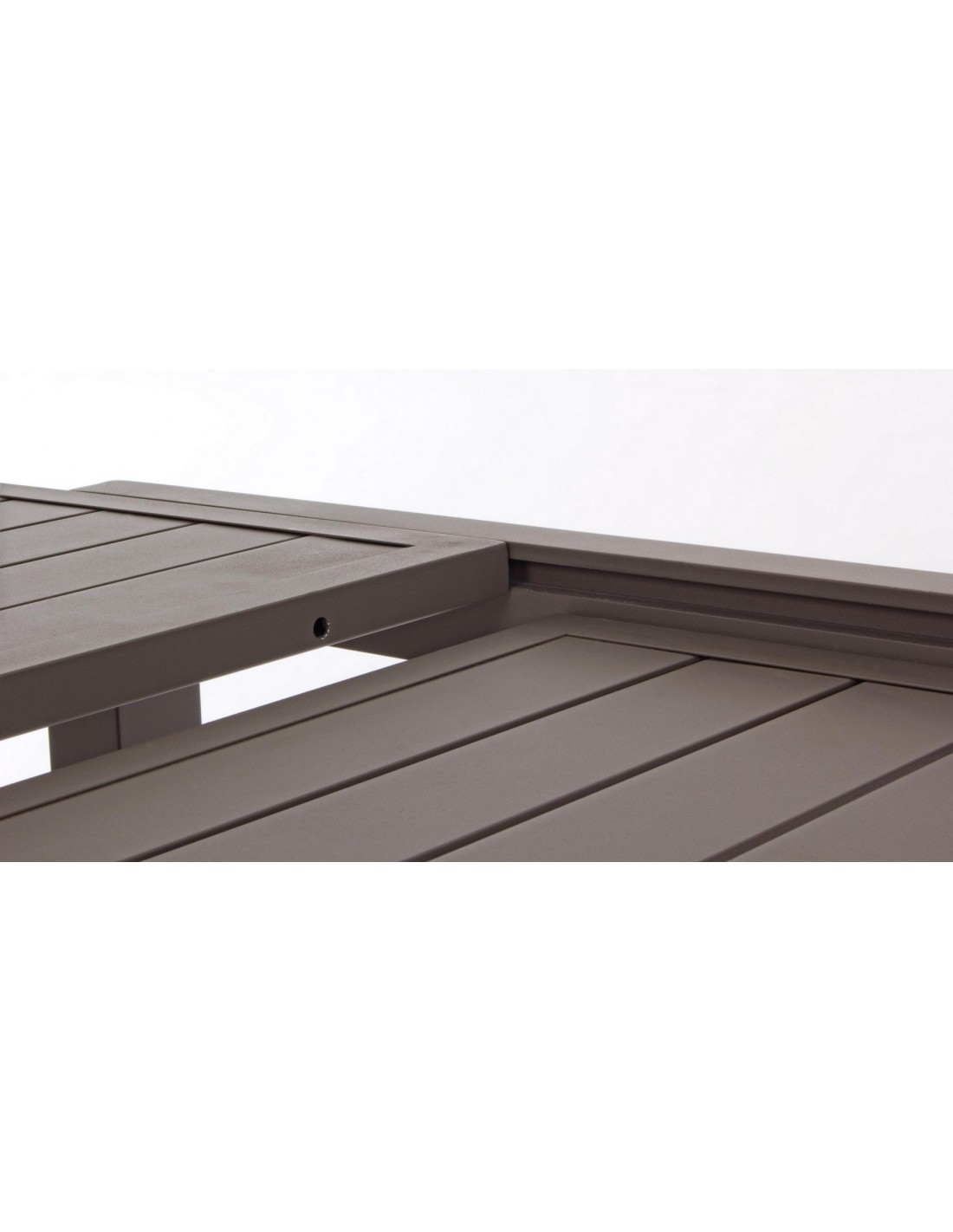 Havebord med udtræk, udført i et design af kaffefarvet pulverlakeret aluminium. Bordet måler 75 cm i højden og 160 - 240 x 90 cm i bredde og dybde.