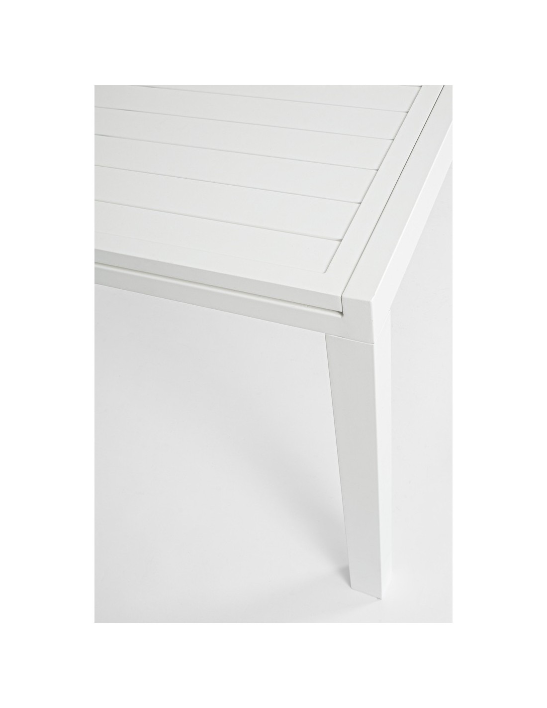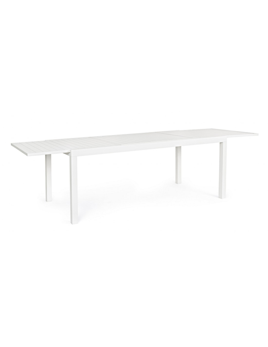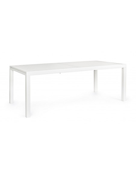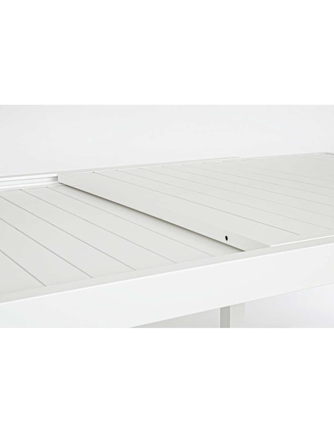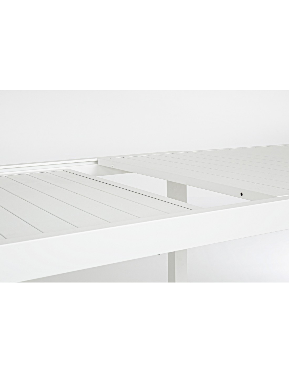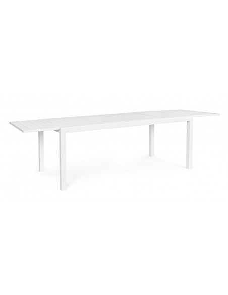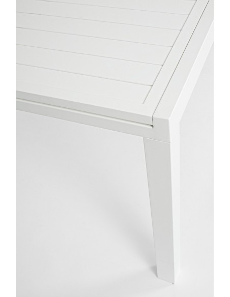 Havebord med udtræk, udført i et design af hvid pulverlakeret aluminium. Bordet måler 75 cm i højden og 200 - 300 x 100 cm i bredde og dybde.