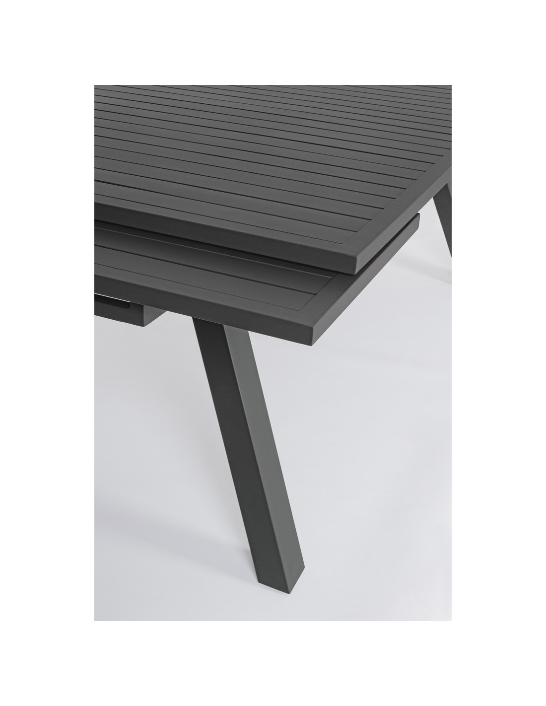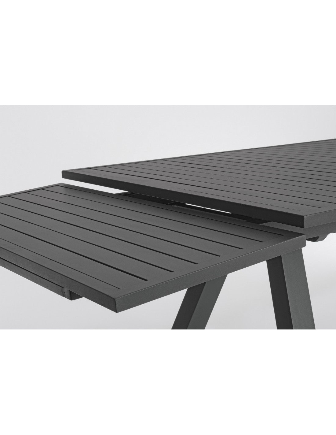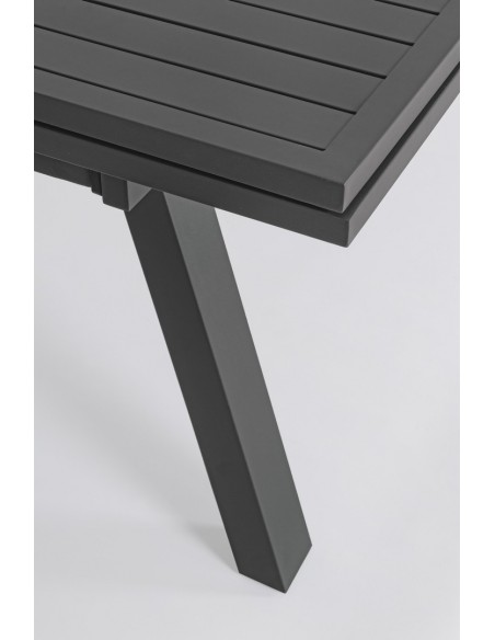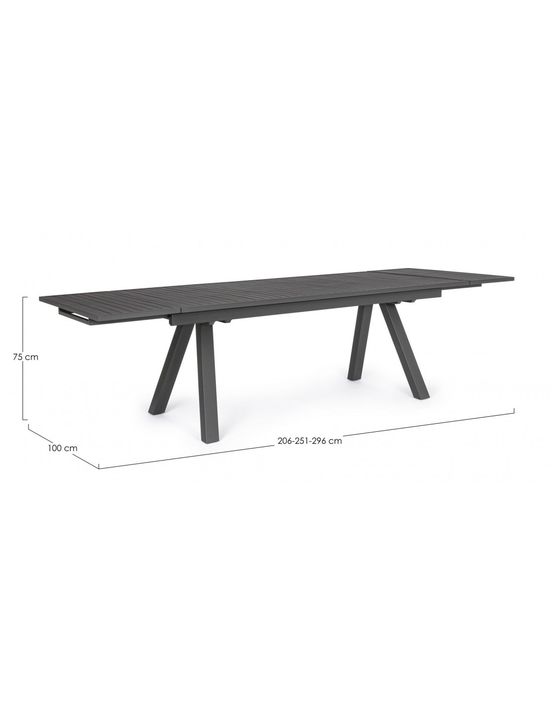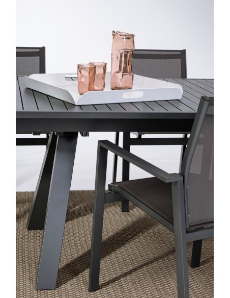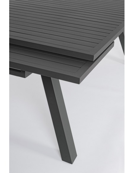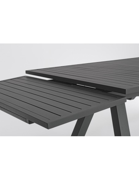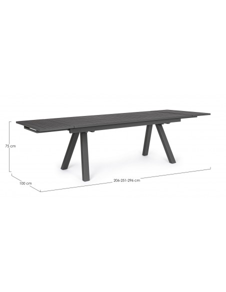 Havebord med udtræk, udført i et design af charcoal pulverlakeret aluminium. Bordet måler 75 cm i højden og 206 - 251 - 296 x 100 cm i bredde og dybde.