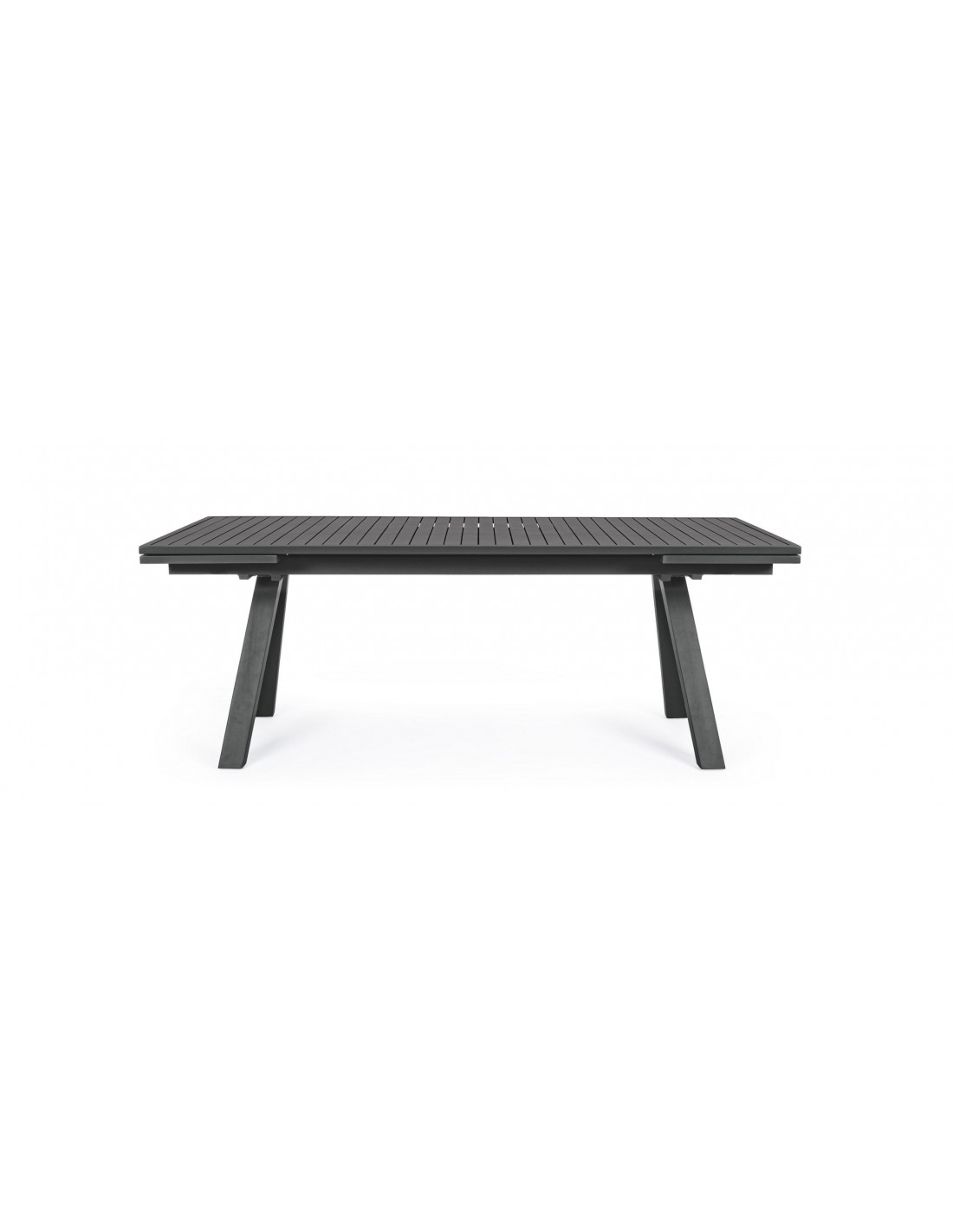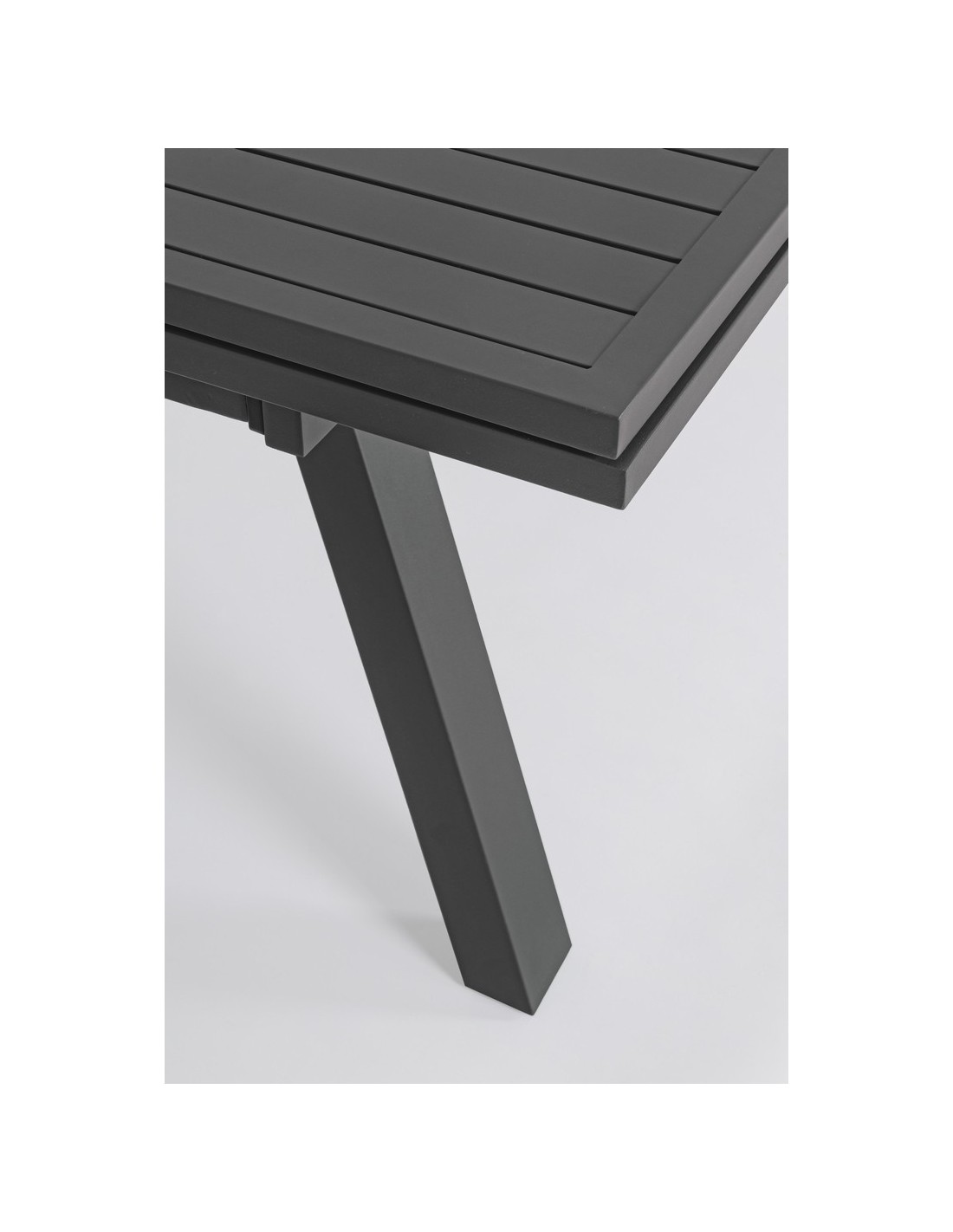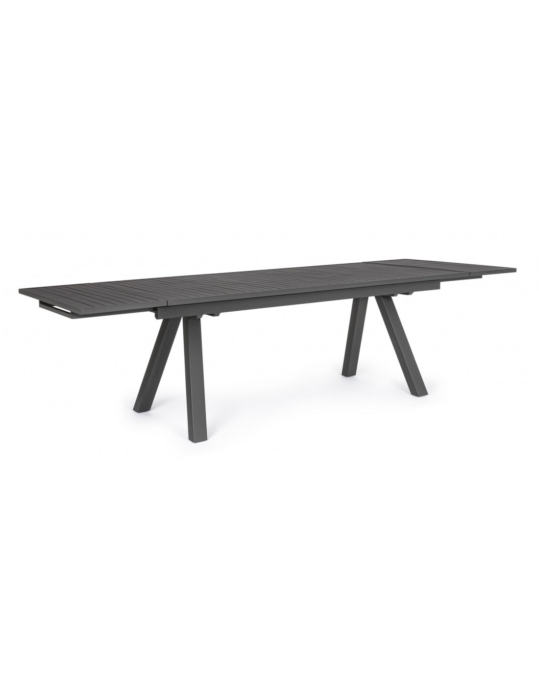 Havebord med udtræk, udført i et design af charcoal pulverlakeret aluminium. Bordet måler 75 cm i højden og 206 - 251 - 296 x 100 cm i bredde og dybde.