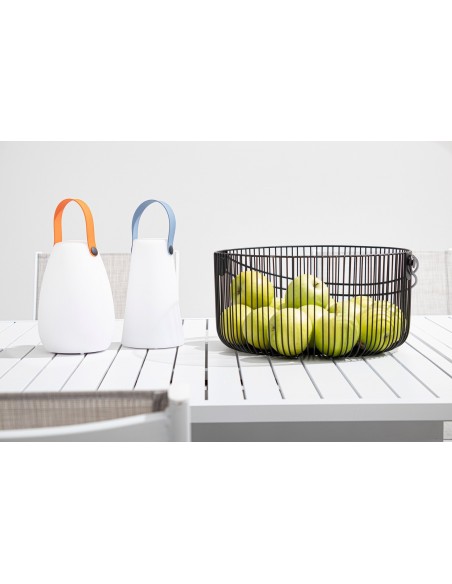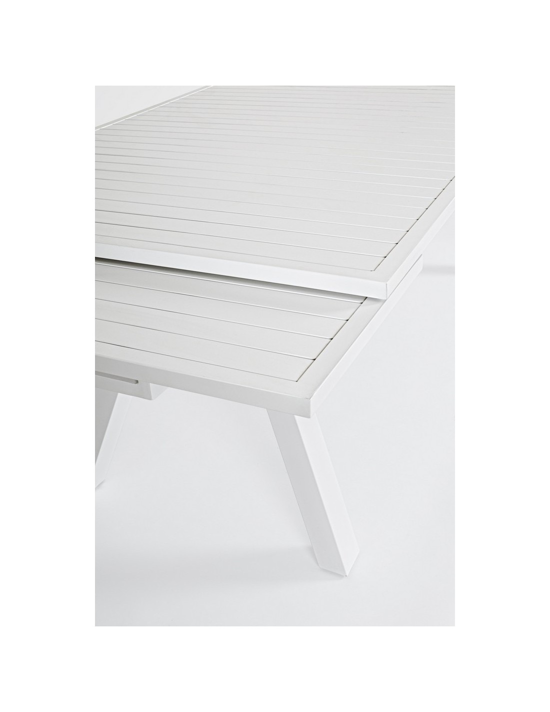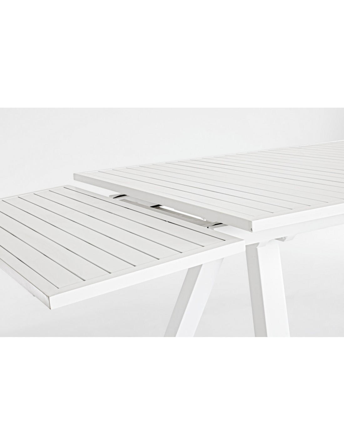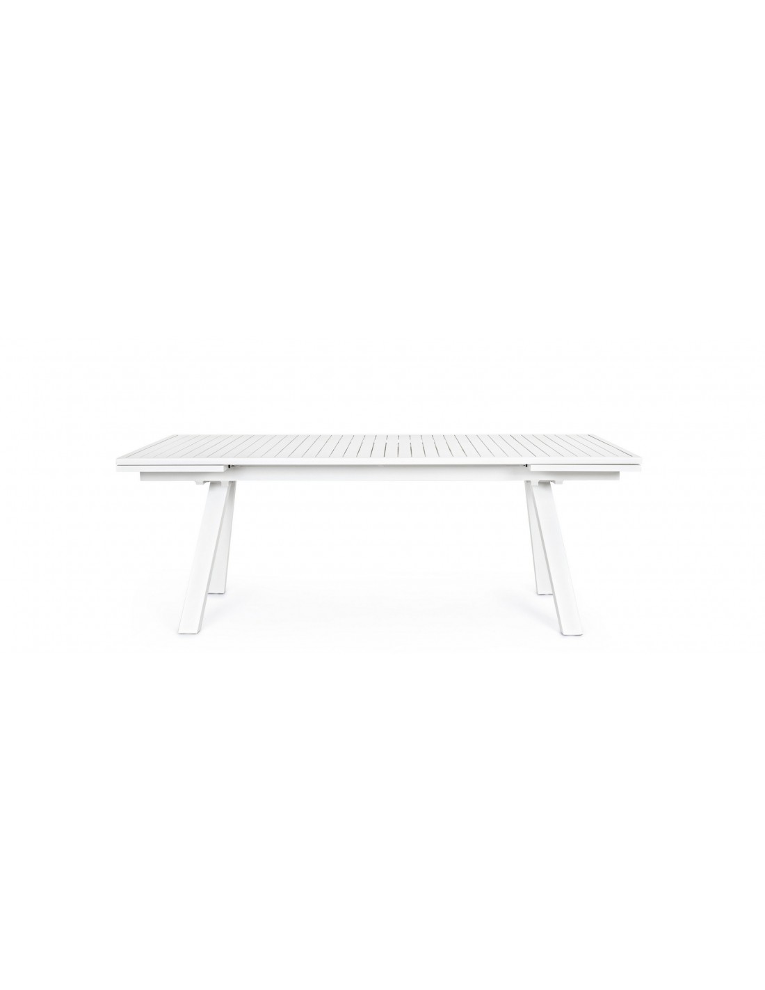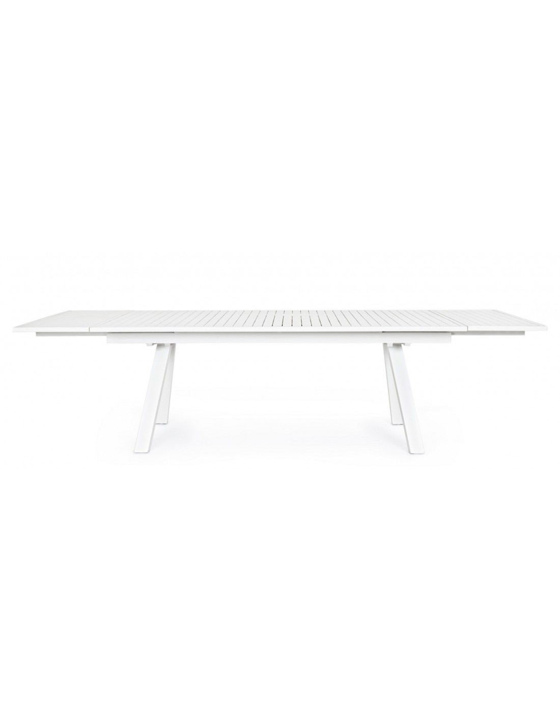 Havebord med udtræk, udført i et design af hvid pulverlakeret aluminium. Bordet måler 75 cm i højden og 206 - 251 - 296 x 100 cm i bredde og dybde.