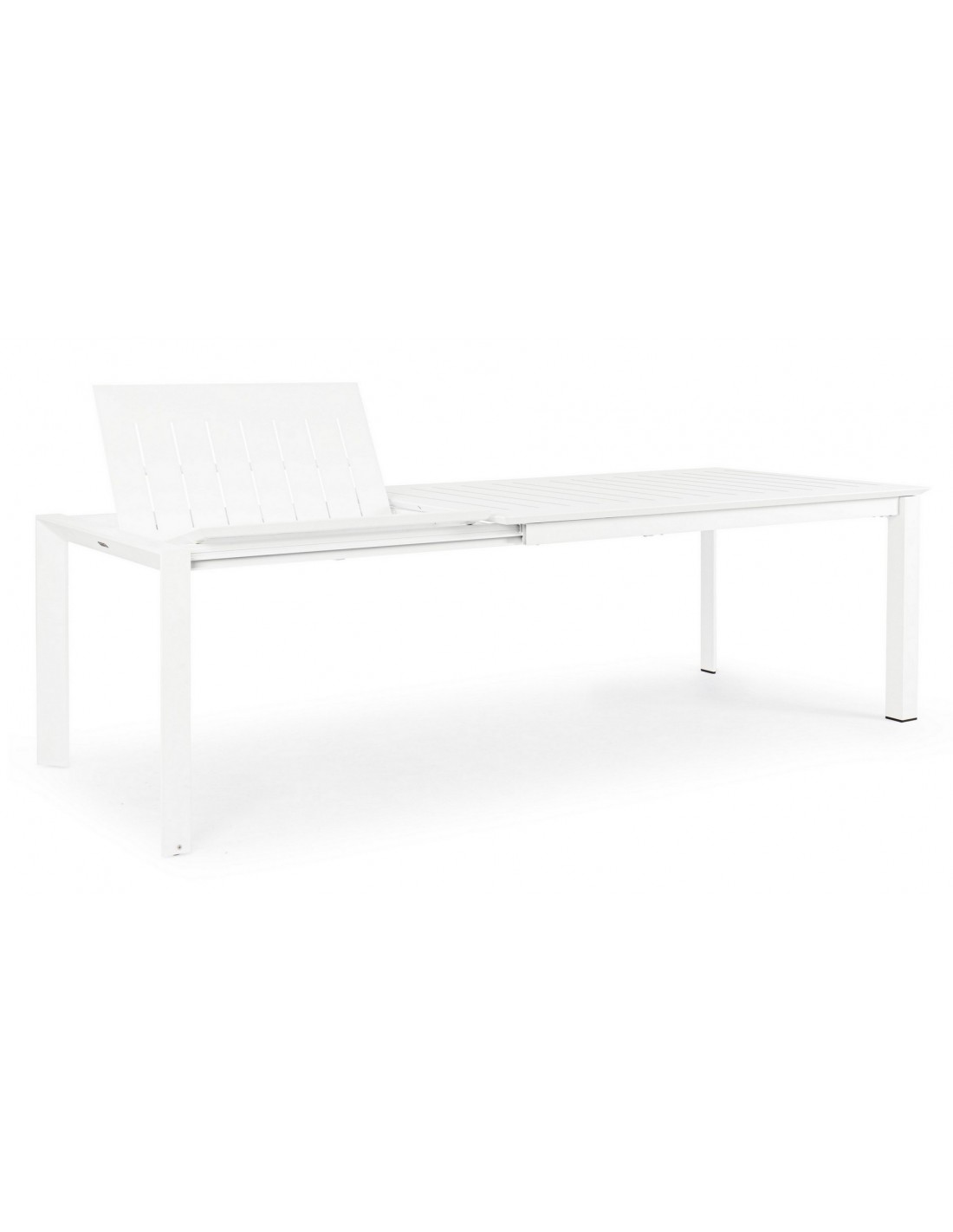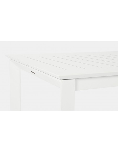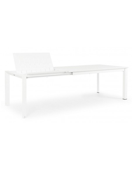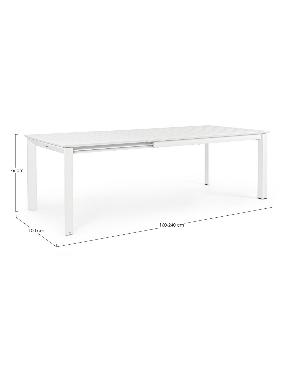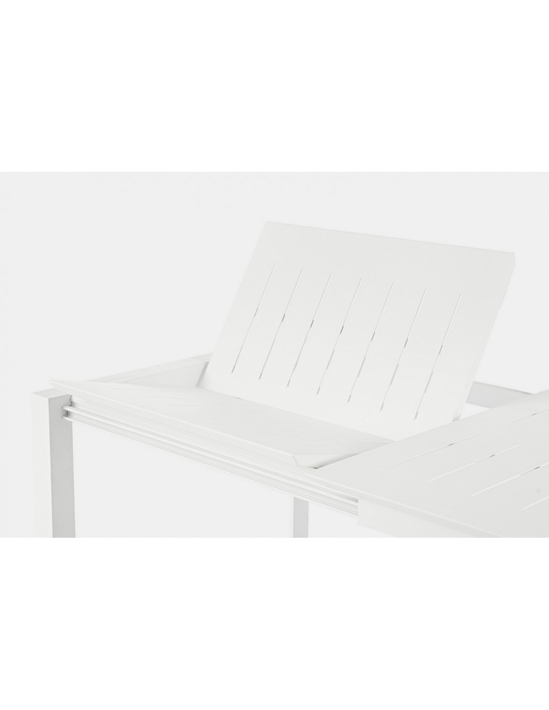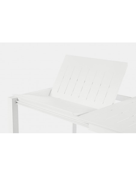 Havebord med udtræk, udført i et design af hvid pulverlakeret aluminium. Bordet måler 76 cm i højden og 160 - 240 x 100 cm i bredde og dybde.