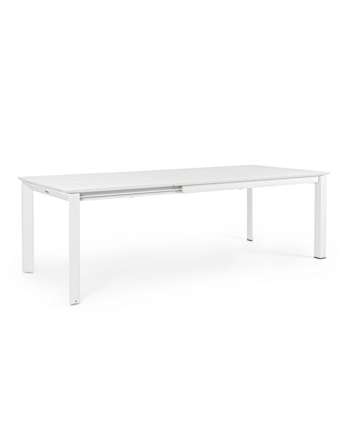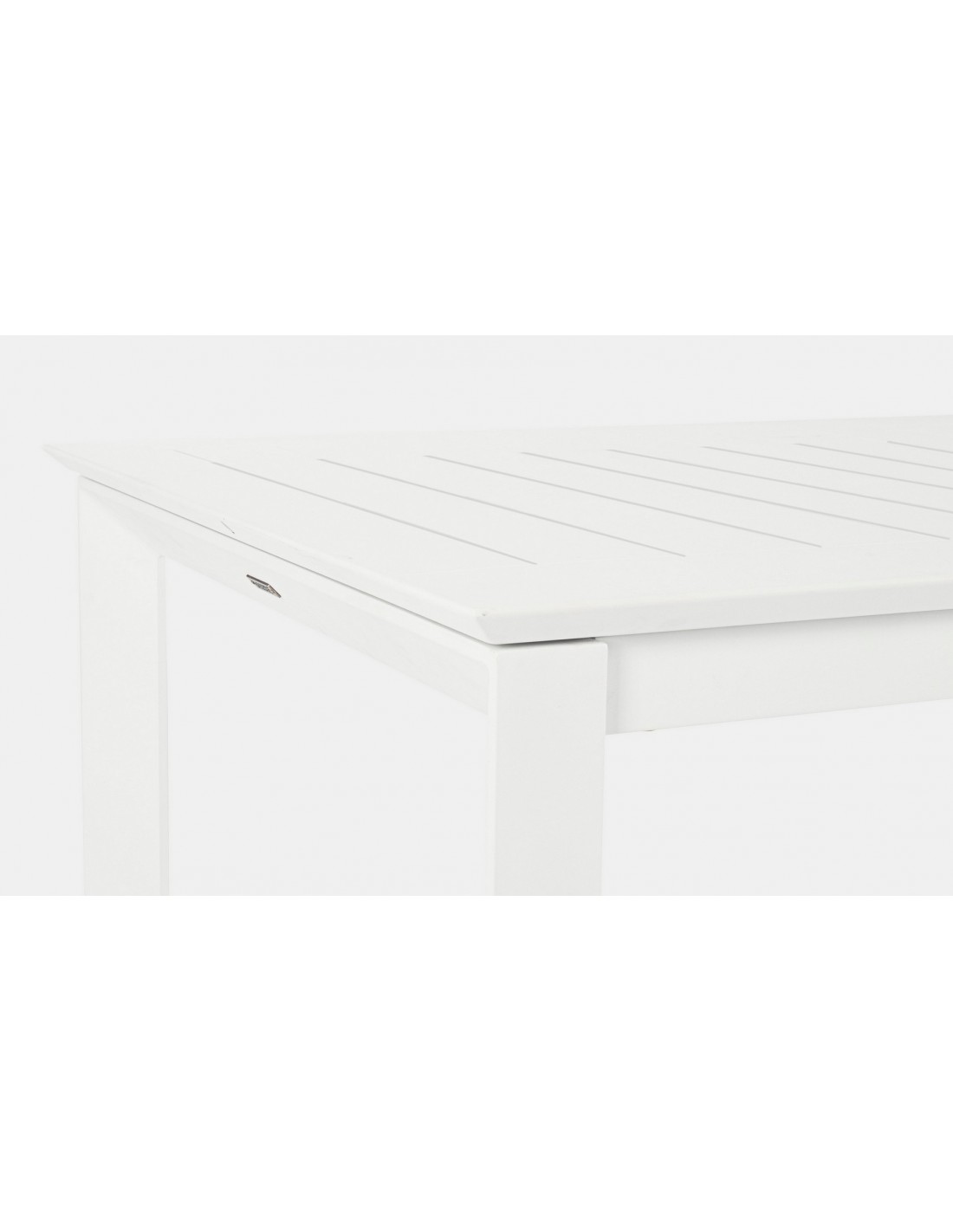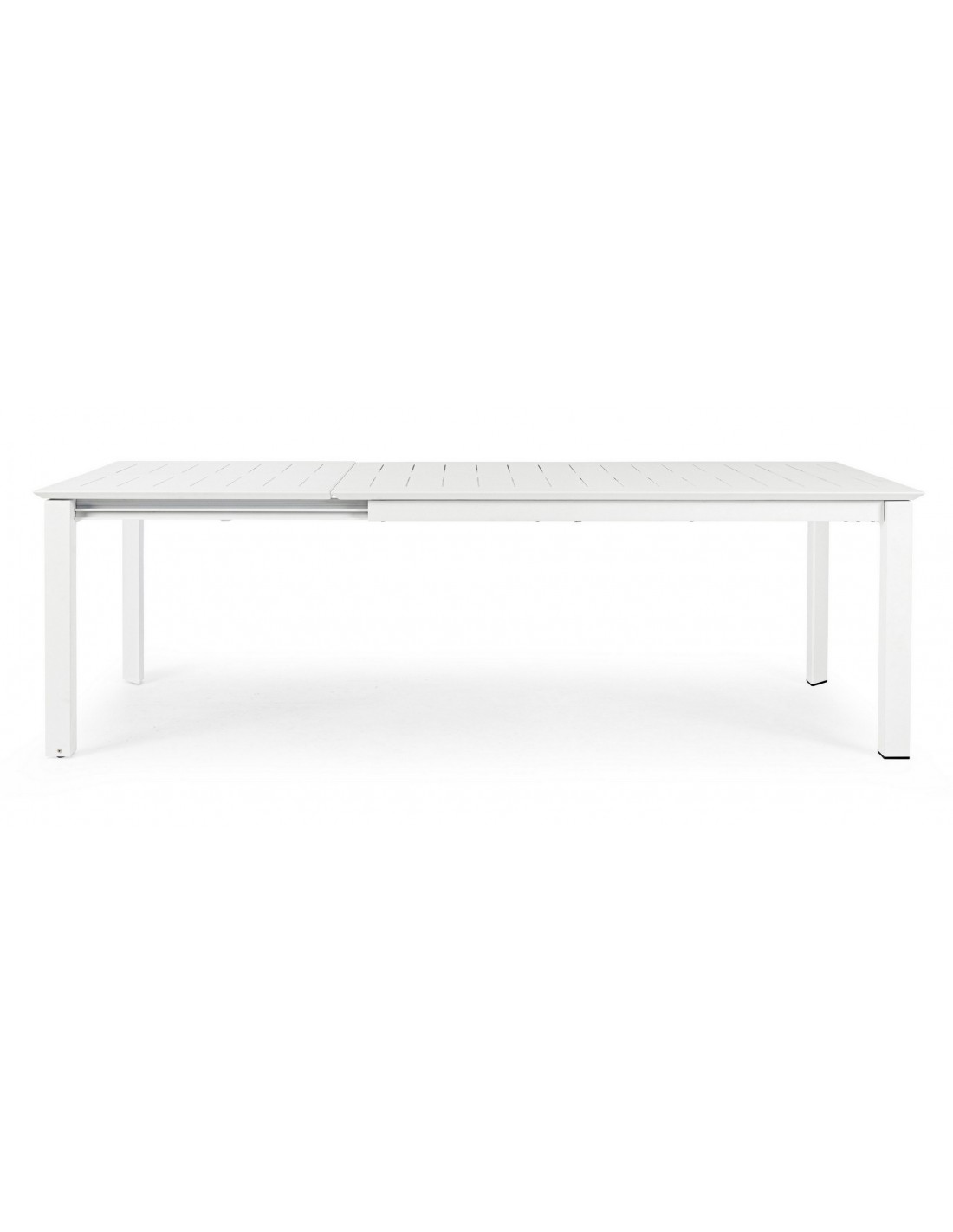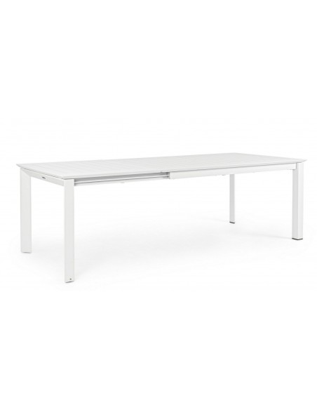 Havebord med udtræk, udført i et design af hvid pulverlakeret aluminium. Bordet måler 76 cm i højden og 160 - 240 x 100 cm i bredde og dybde.