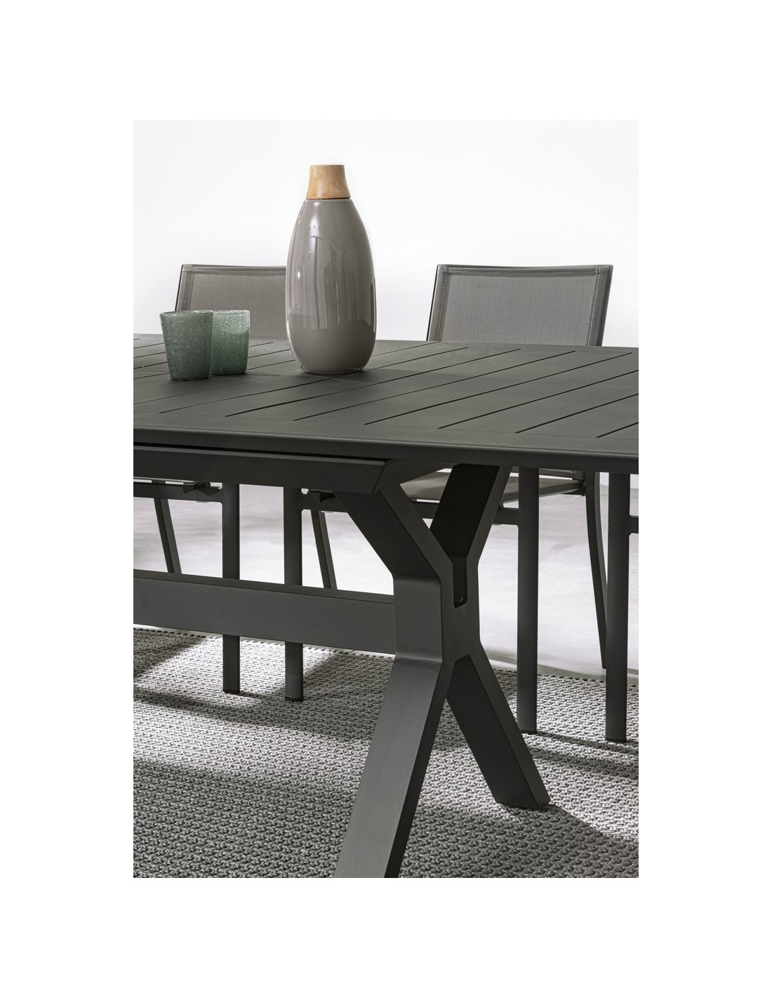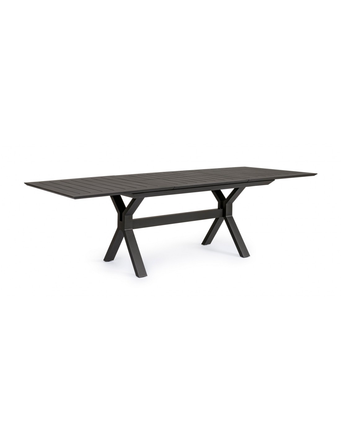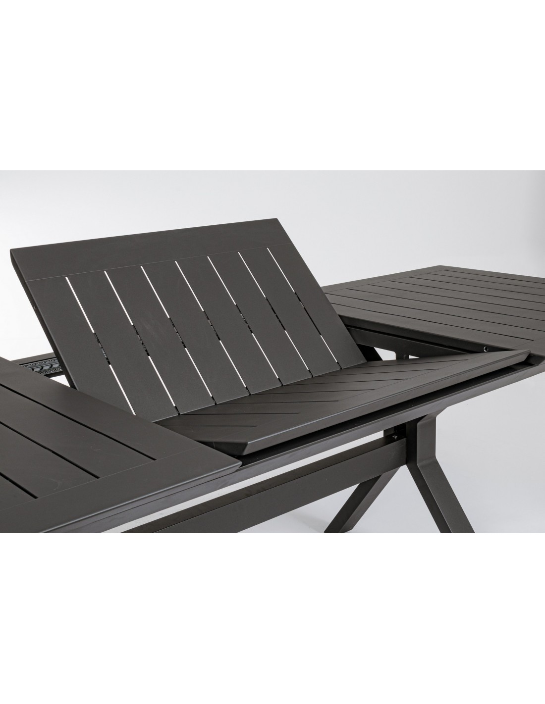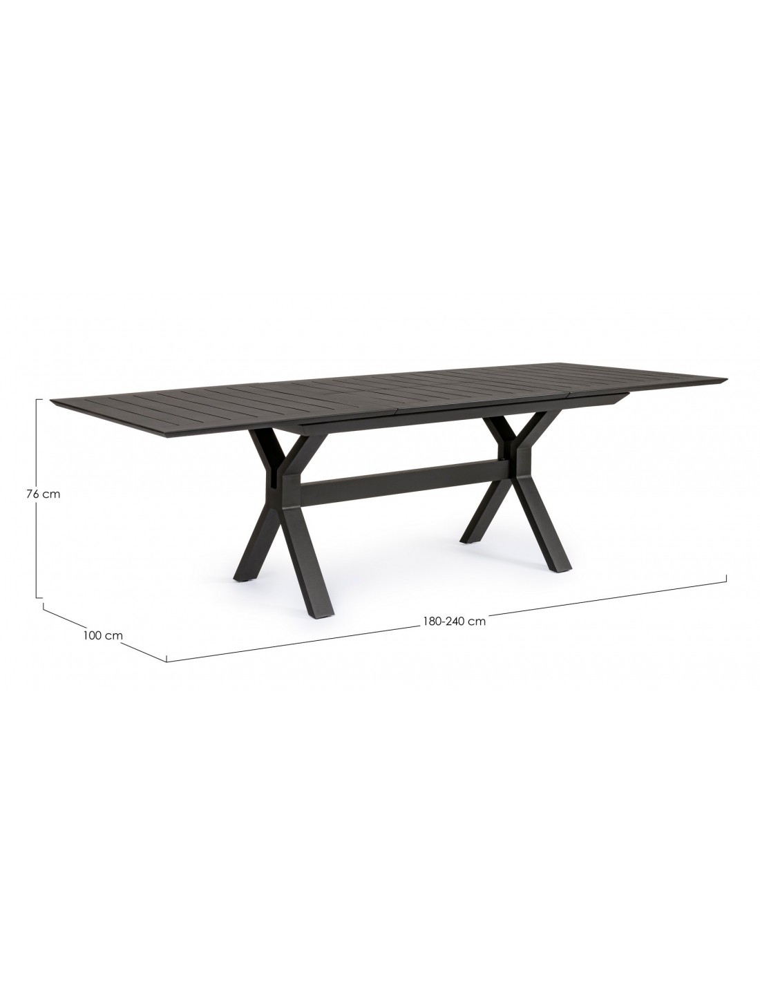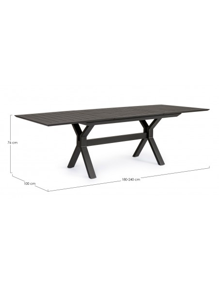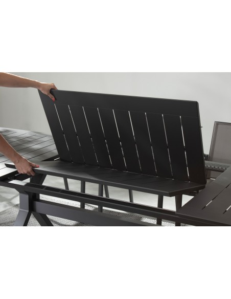 Havebord med udtræk, udført i et design af charcoal pulverlakeret aluminium. Bordet måler 76 cm i højden og 180 - 240 x 100 cm i bredde og dybde.
