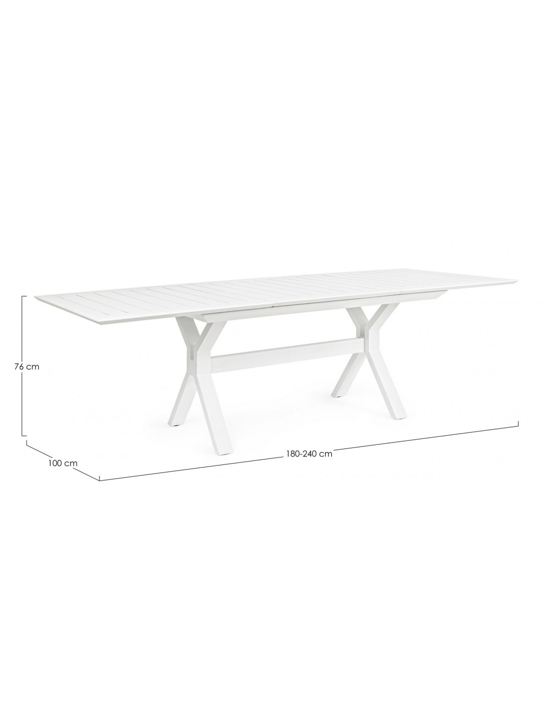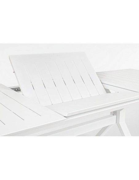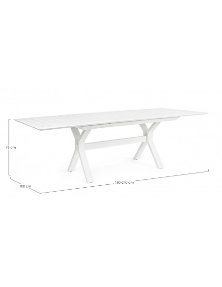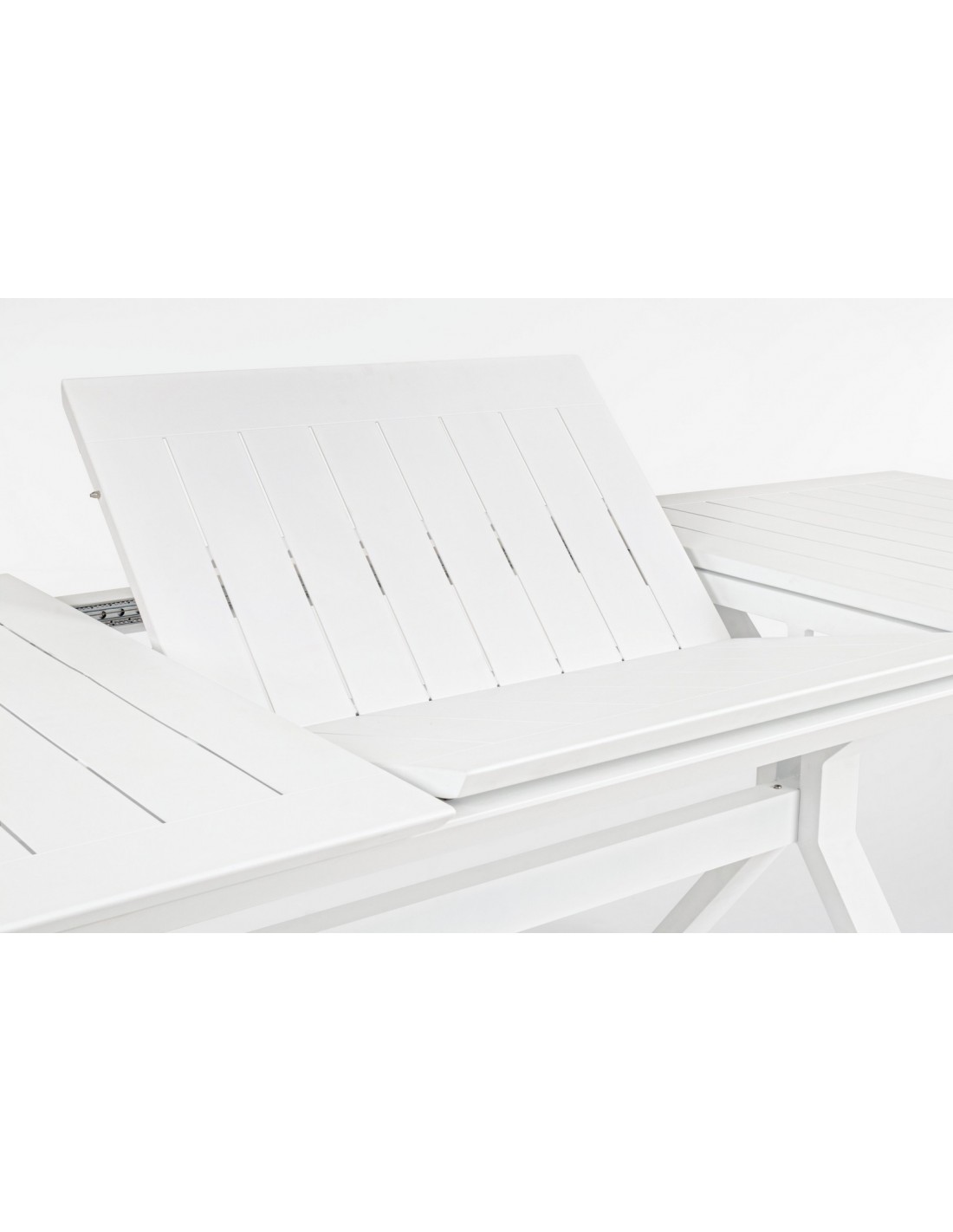 Havebord med udtræk, udført i et design af hvid pulverlakeret aluminium. Bordet måler 76 cm i højden og 180 - 240 x 100 cm i bredde og dybde.