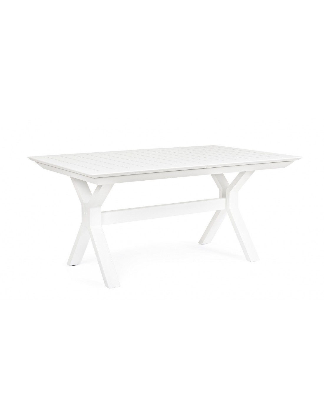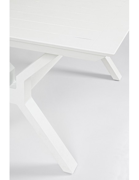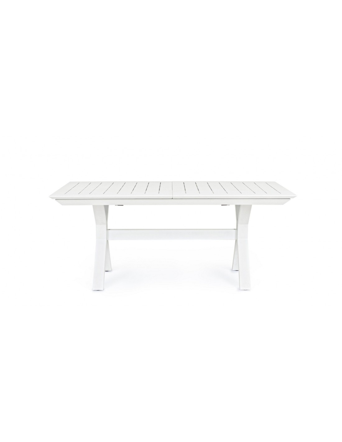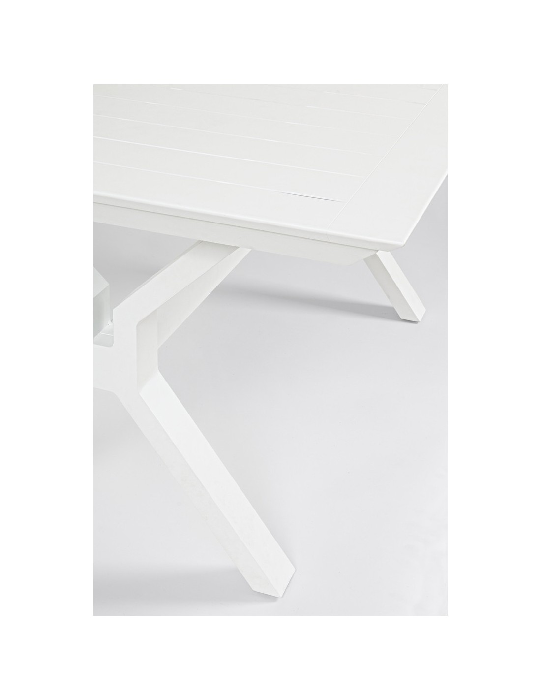 Havebord med udtræk, udført i et design af hvid pulverlakeret aluminium. Bordet måler 76 cm i højden og 180 - 240 x 100 cm i bredde og dybde.