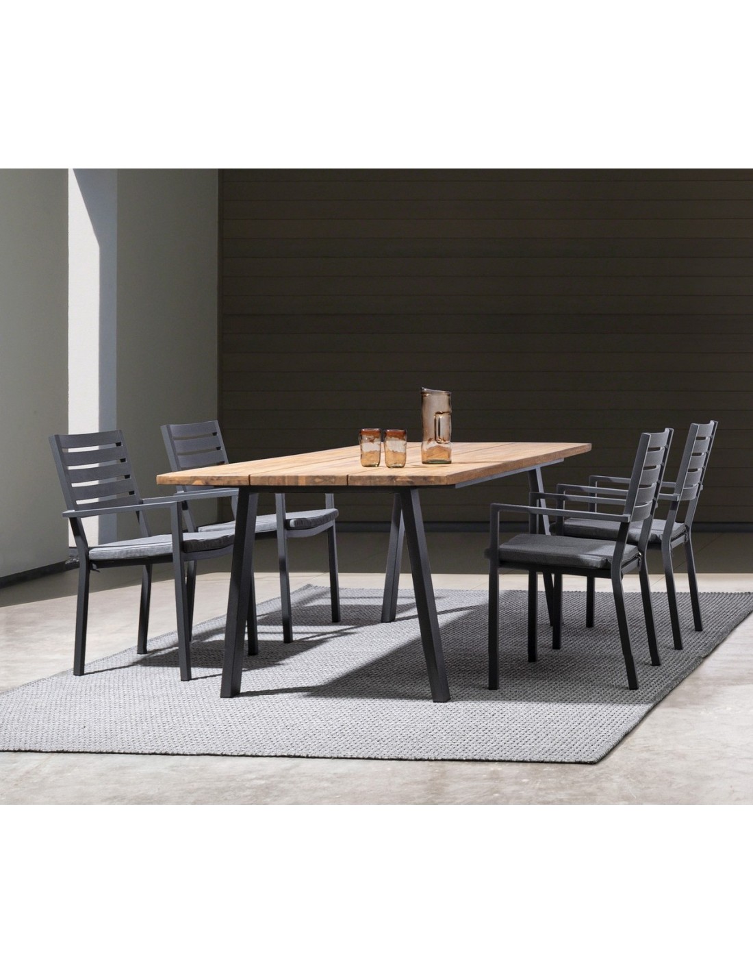 Havebord udført i et design af charcoal pulverlakeret aluminium og olieret akacietræ. Bordet måler 76 cm i højden og 160 x 90 cm i bredde og dybde.