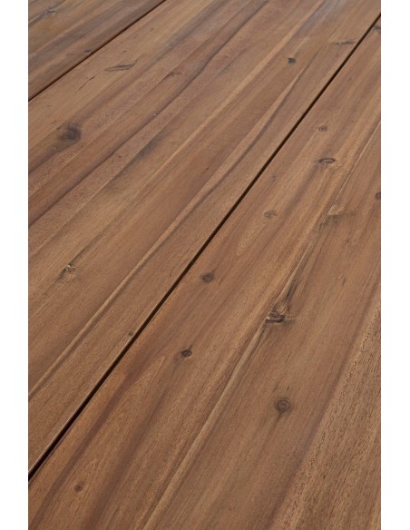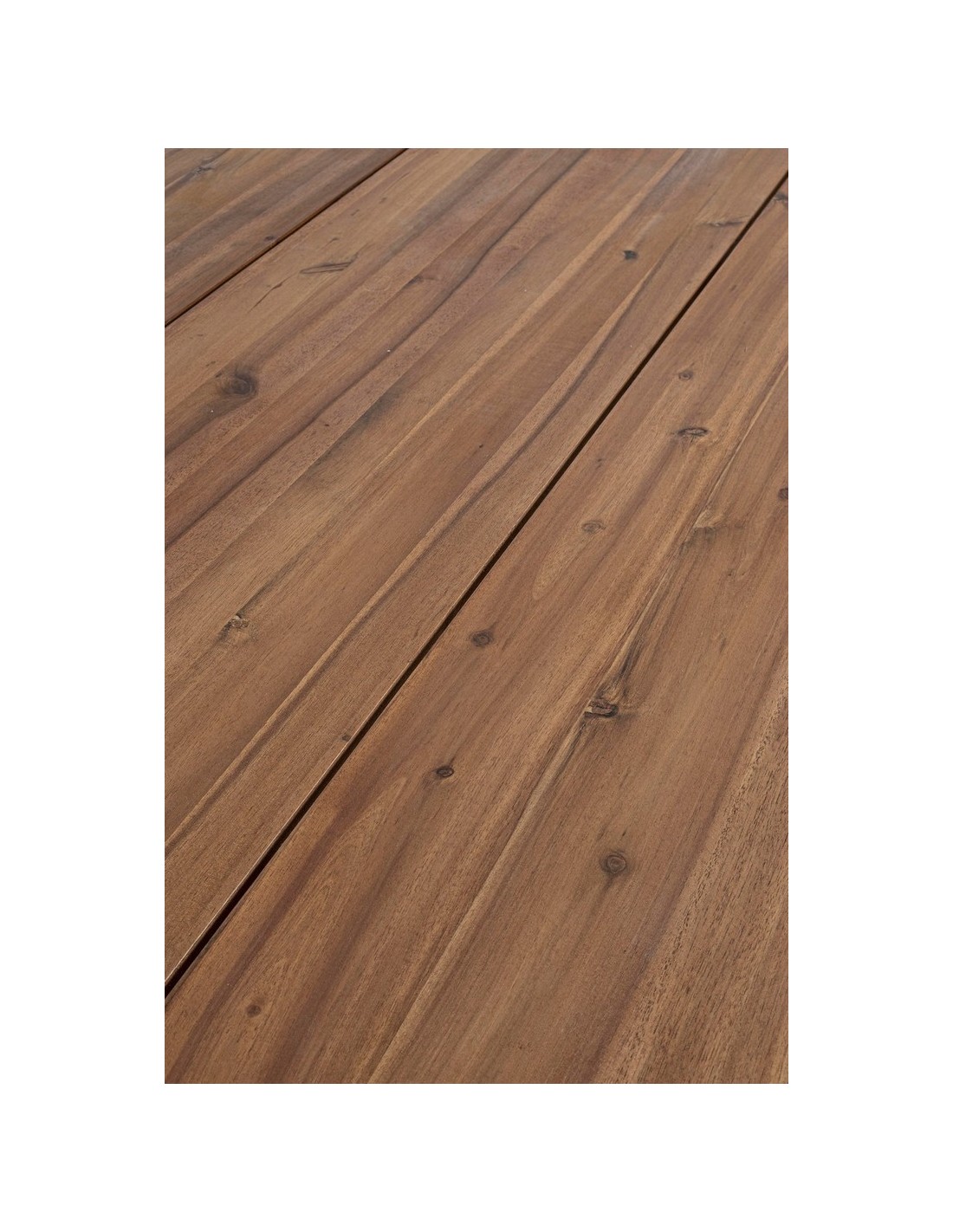 Akacietræ er naturligt resistent overfor fugt, og tåler at stå udendørs i regn, men vi anbefaler løbende at vedligeholde bordet med træolie.