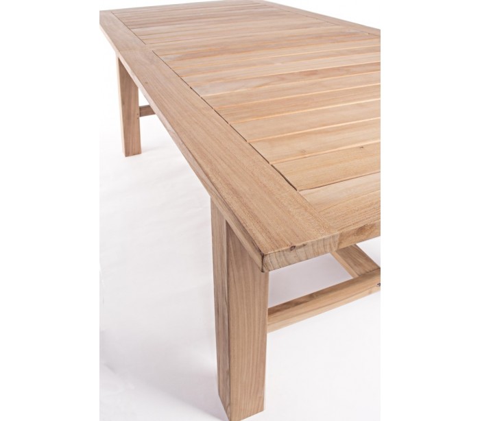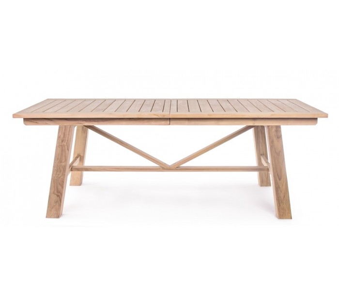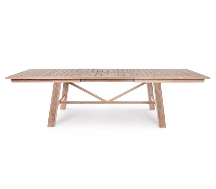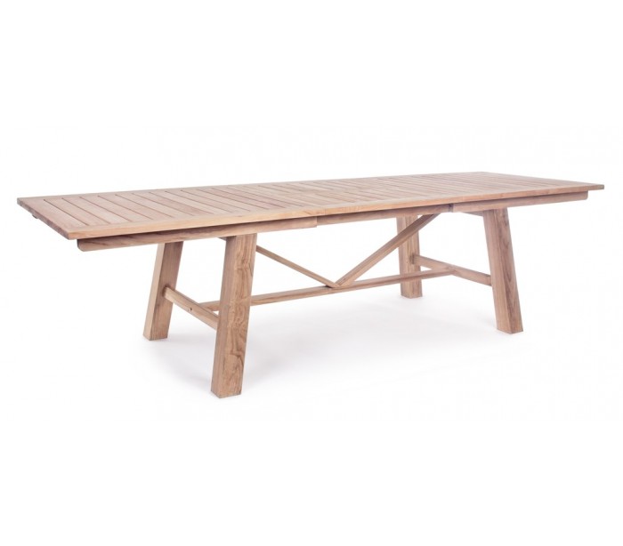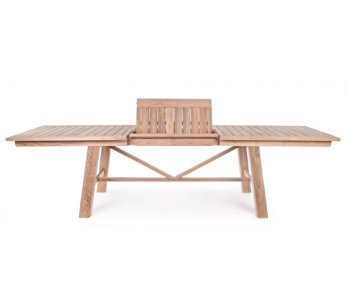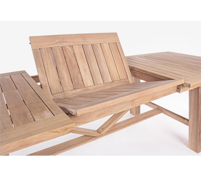 Havebord med udtræk i et moderne design af genanvendt teaktræ. Bordet måler 220 - 300 x 100 cm i bredde og dybde og 77,5 cm i højden. Teaktræ er naturligt resistent overfor fugt, men vi anbefaler løbende behandling med teaktræsolie.