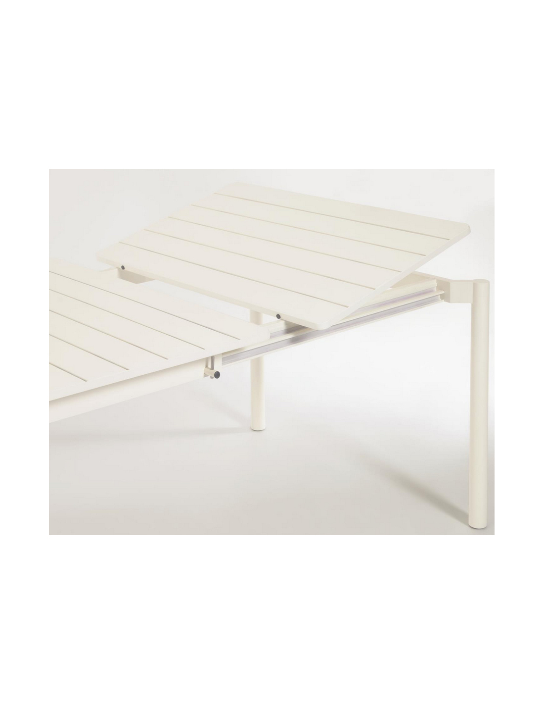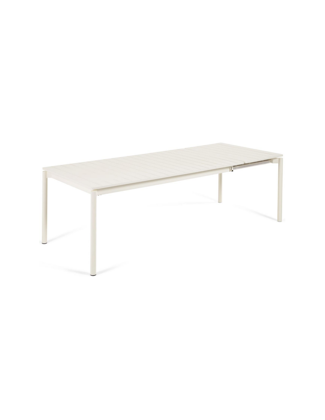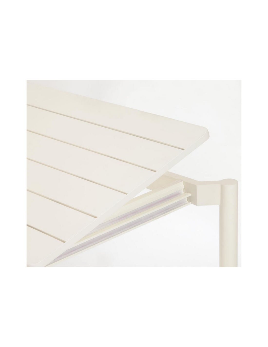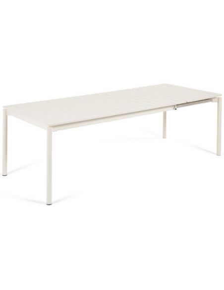 Havebord med udtræk, udført i et design fra LaForma, fremstillet af mat hvidlakeret aluminium. Bordet måler 75 cm i højden og 180 - 240 x 100 cm i bredde og dybde.