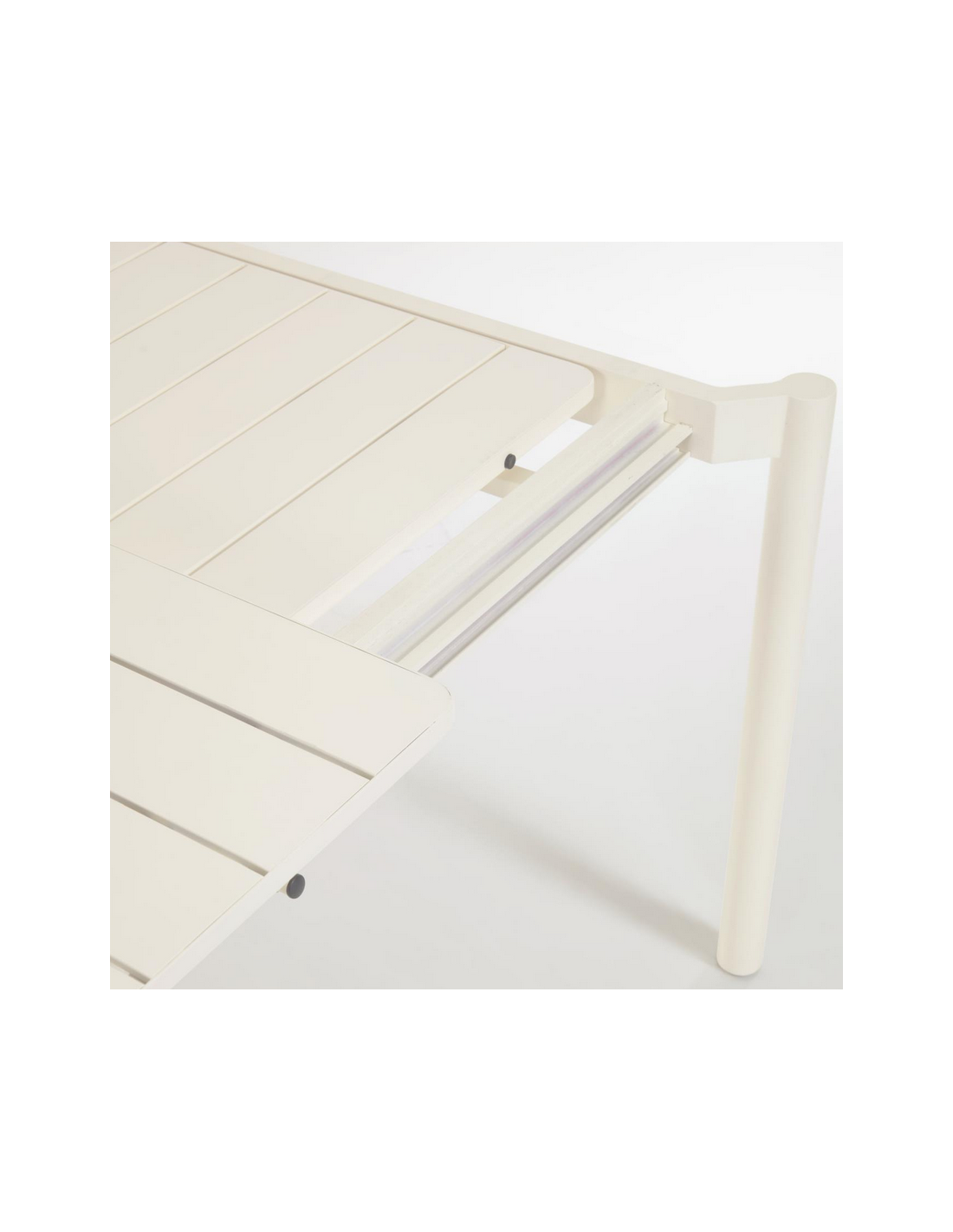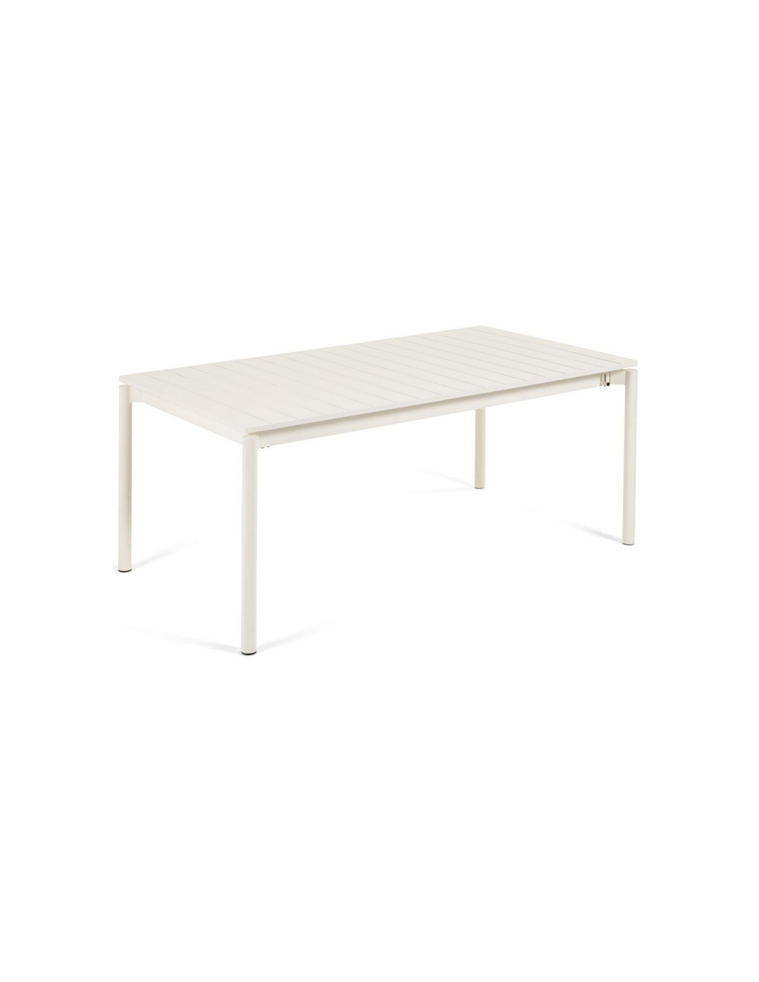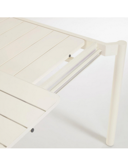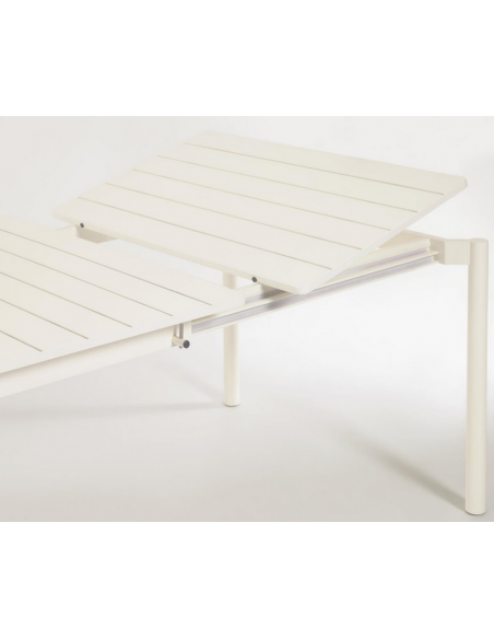 Havebord med udtræk, udført i et design fra LaForma, fremstillet af mat hvidlakeret aluminium. Bordet måler 75 cm i højden og 180 - 240 x 100 cm i bredde og dybde.