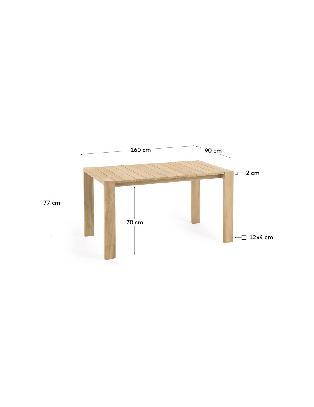 Havebord udført i et design fra LaForma, fremstillet af teaktræ. Bordet måler 77 cm i højden og 160 x 90 cm i bredde og dybde.